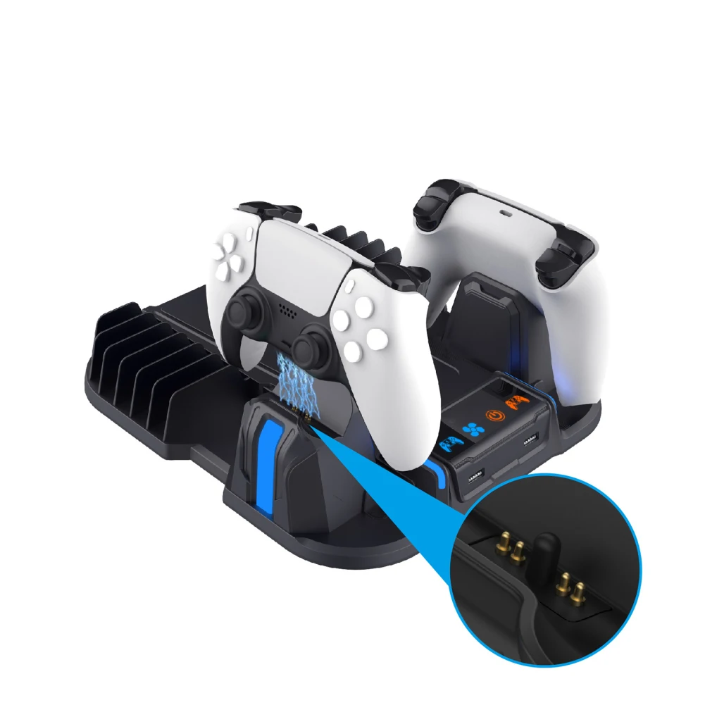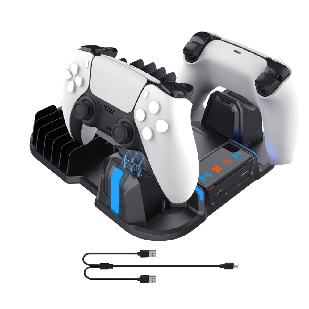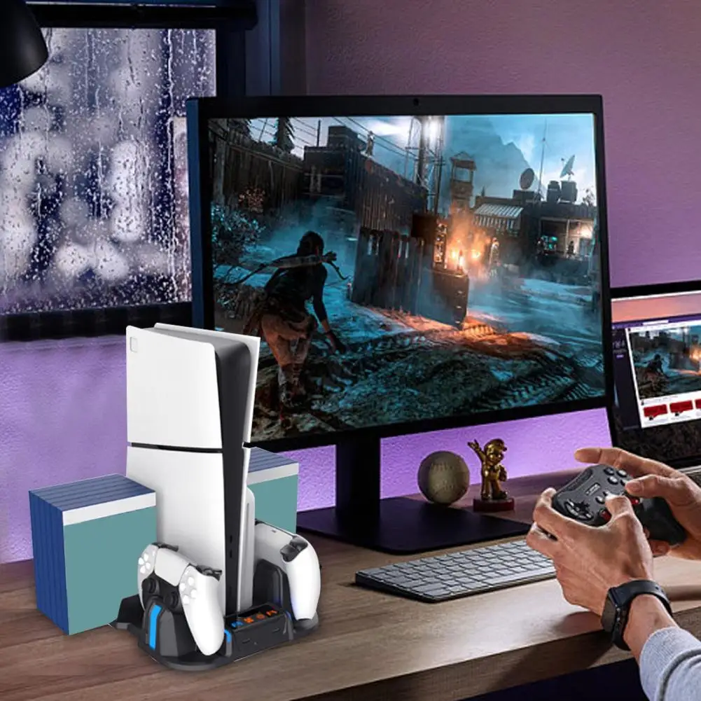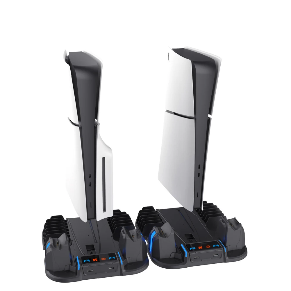 Comprar Accesorios para consola de juegos, soporte de refrigeración con cargador de 2 mandos, 12 discos de juego, estante de almacenamiento Compatible con consola PS5 Slim