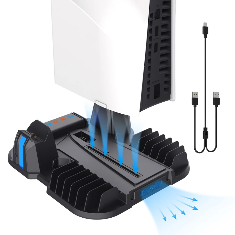 Comprar Accesorios para consola de juegos, soporte de refrigeración con cargador de 2 mandos, 12 discos de juego, estante de almacenamiento Compatible con consola PS5 Slim