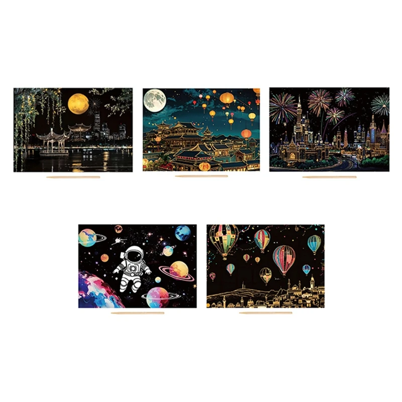[4.Arte para raspar con memoria para niños y adultos]: nuestro papel para raspar está diseñado con imágenes reales y tiene una alta reparación y renaturación.Un traje artístico escultórico completo para artistas de todas las edades.Si quieres perder el tiempo en silencio, este tamaño y peso son muy cómodos de transportar, para que puedas crear en cualquier momento.