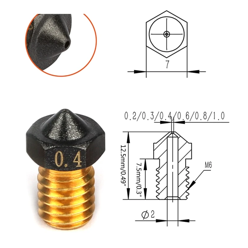 Tamaño: Boquilla para V6: 0,2/0,3/0,4/0,5/0,6/0,8/1,0mm