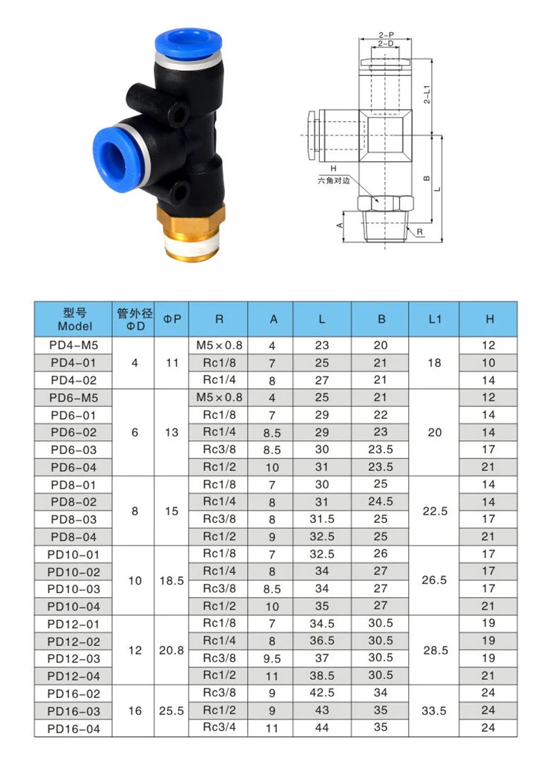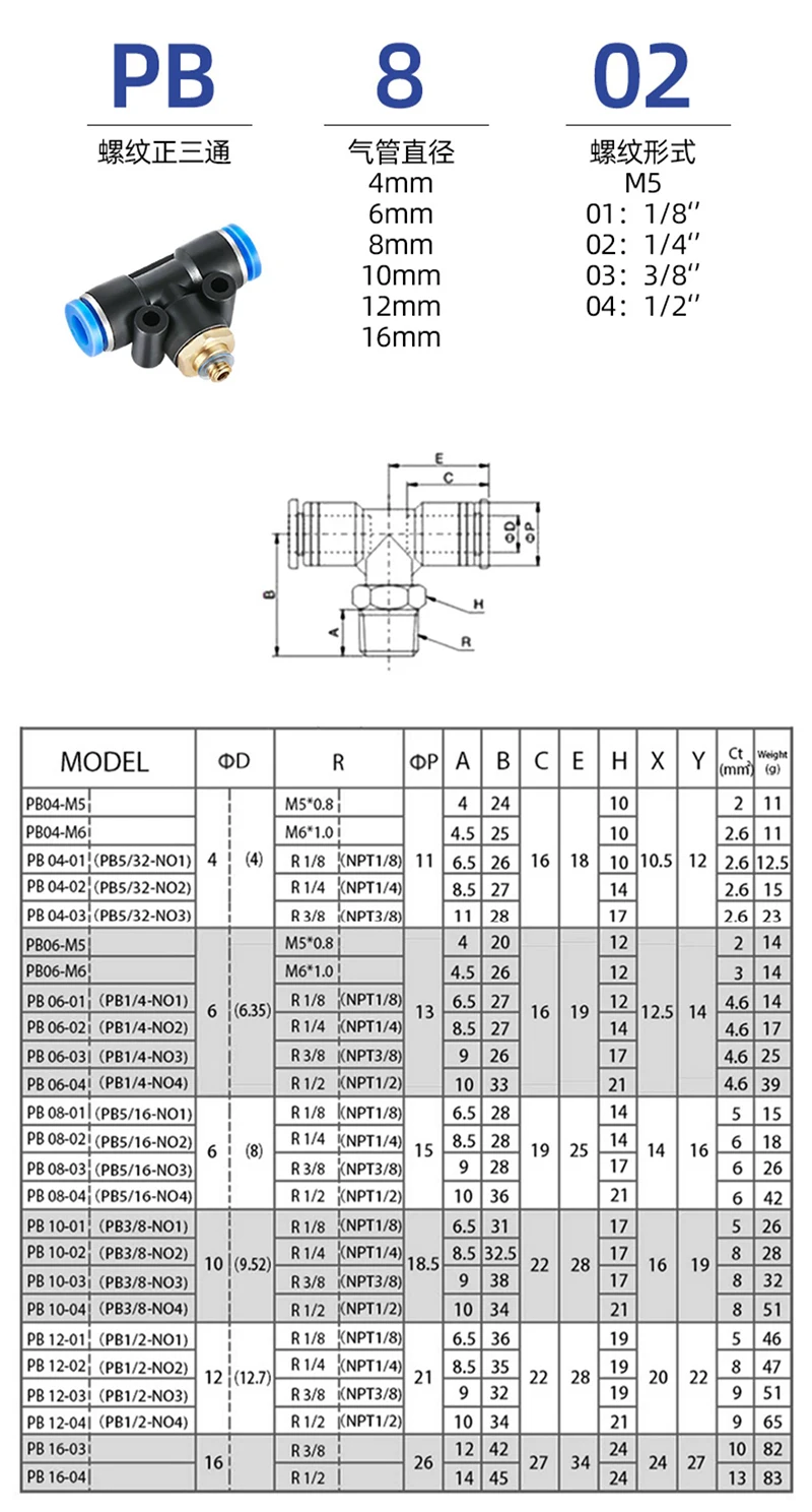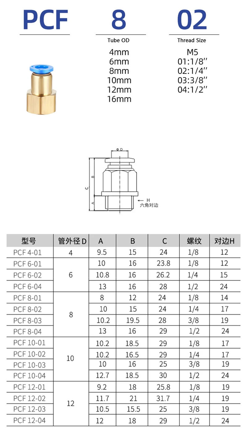 Ajuste para diámetro exterior del tubo: 4mm 6mm 8mm 10mm 12mm