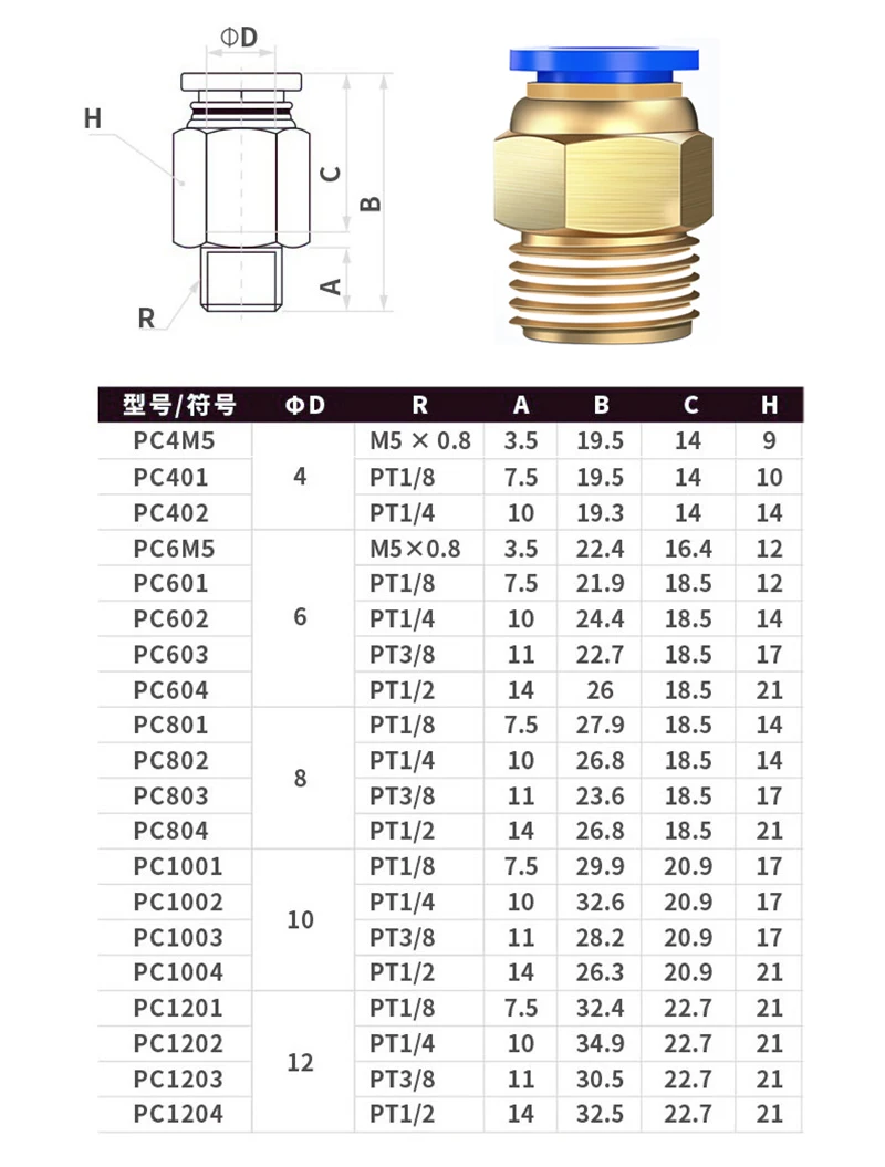 Comprar Accesorios Neumáticos de aire, conectores roscados PC/PCF/PL/PLF 6/8/10 mm BSPT 1/8 3/8 1/2 1/4, accesorio para manguera, rosca macho, acoplamiento rápido