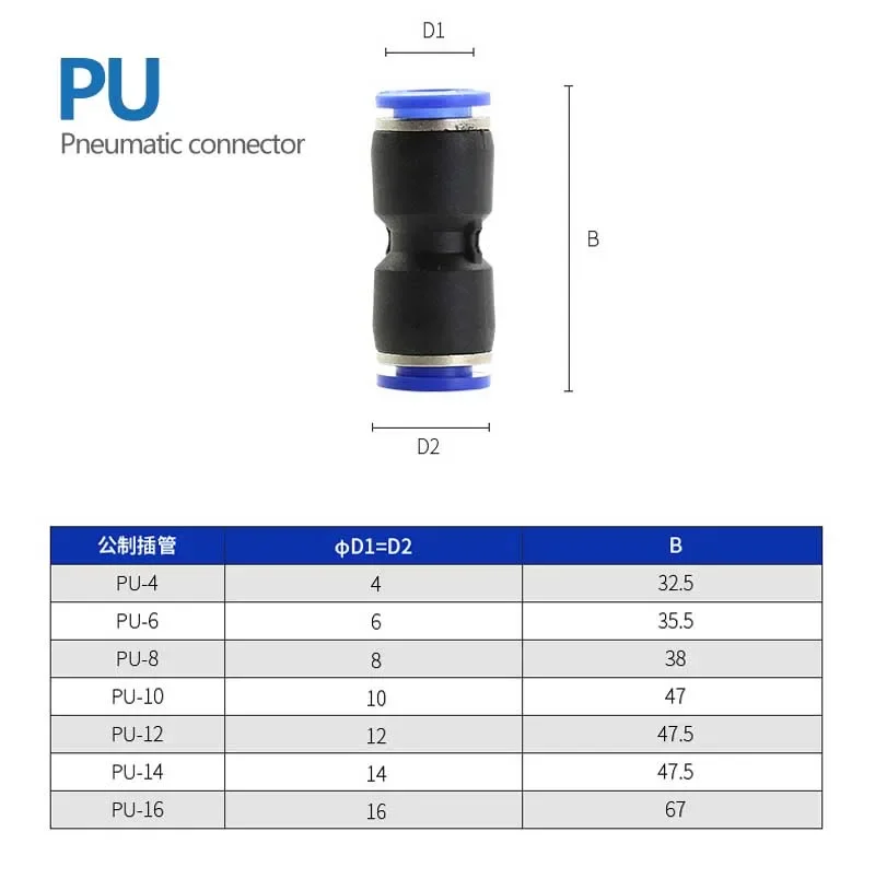 Accesorios neumáticos Conector rápido Conectores de tubo de manguera de aire Plástico PU PY 4 mm 6 mm 8 mm 10 mm 12 mm Empuje en el enchufe