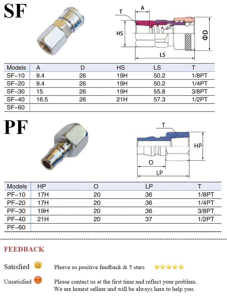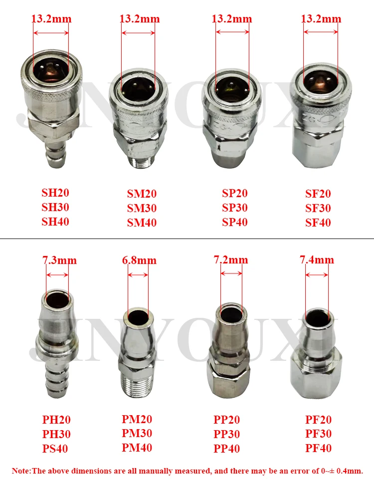 1 Uds PF SF PP SP PH SH PM SM 10 20 30 40 C tipo manguera conector rápido acoplador de alta presión enchufe compresor de aire conector neumático