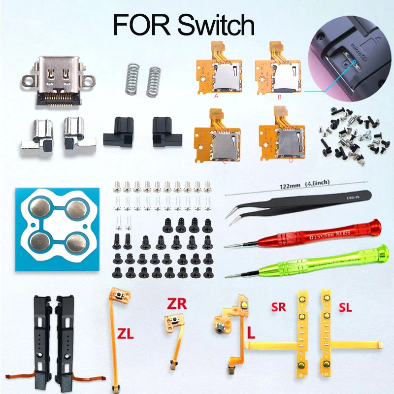 Accesorios de reparación de interruptores, ranura para tarjeta SD, mango, riel deslizante, riel deslizante lateral, juego de herramientas de destornillador de bloqueo de Cable, 1 ud.
