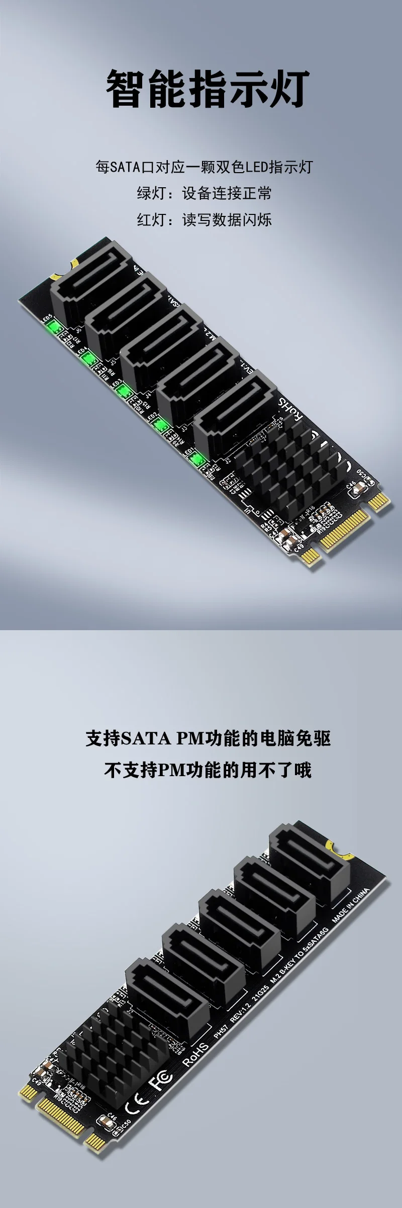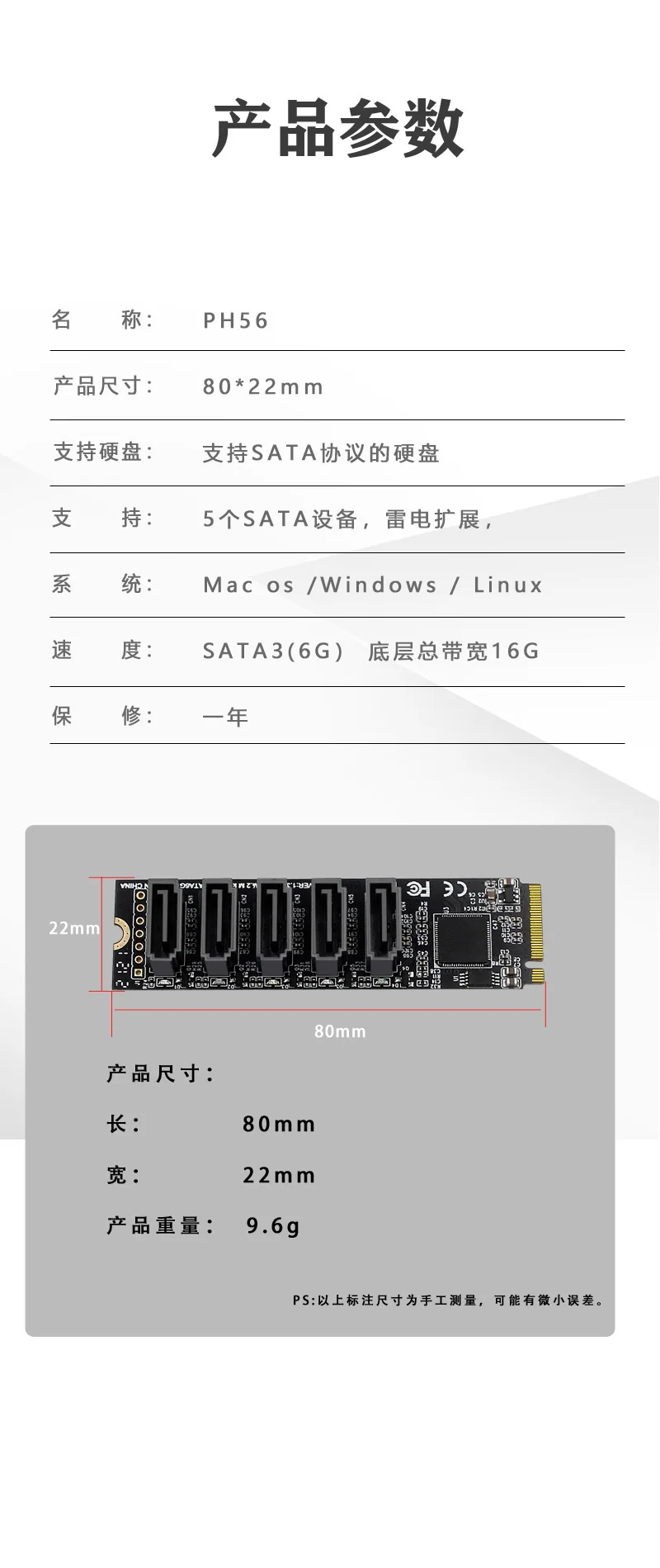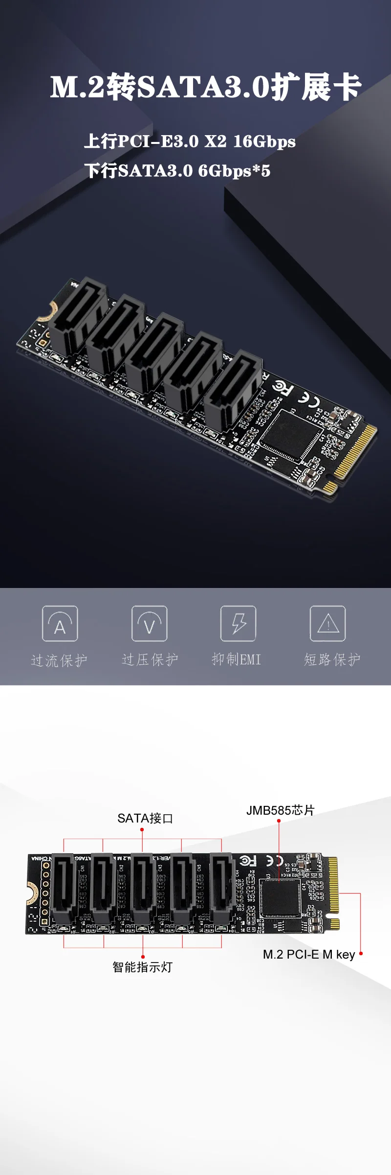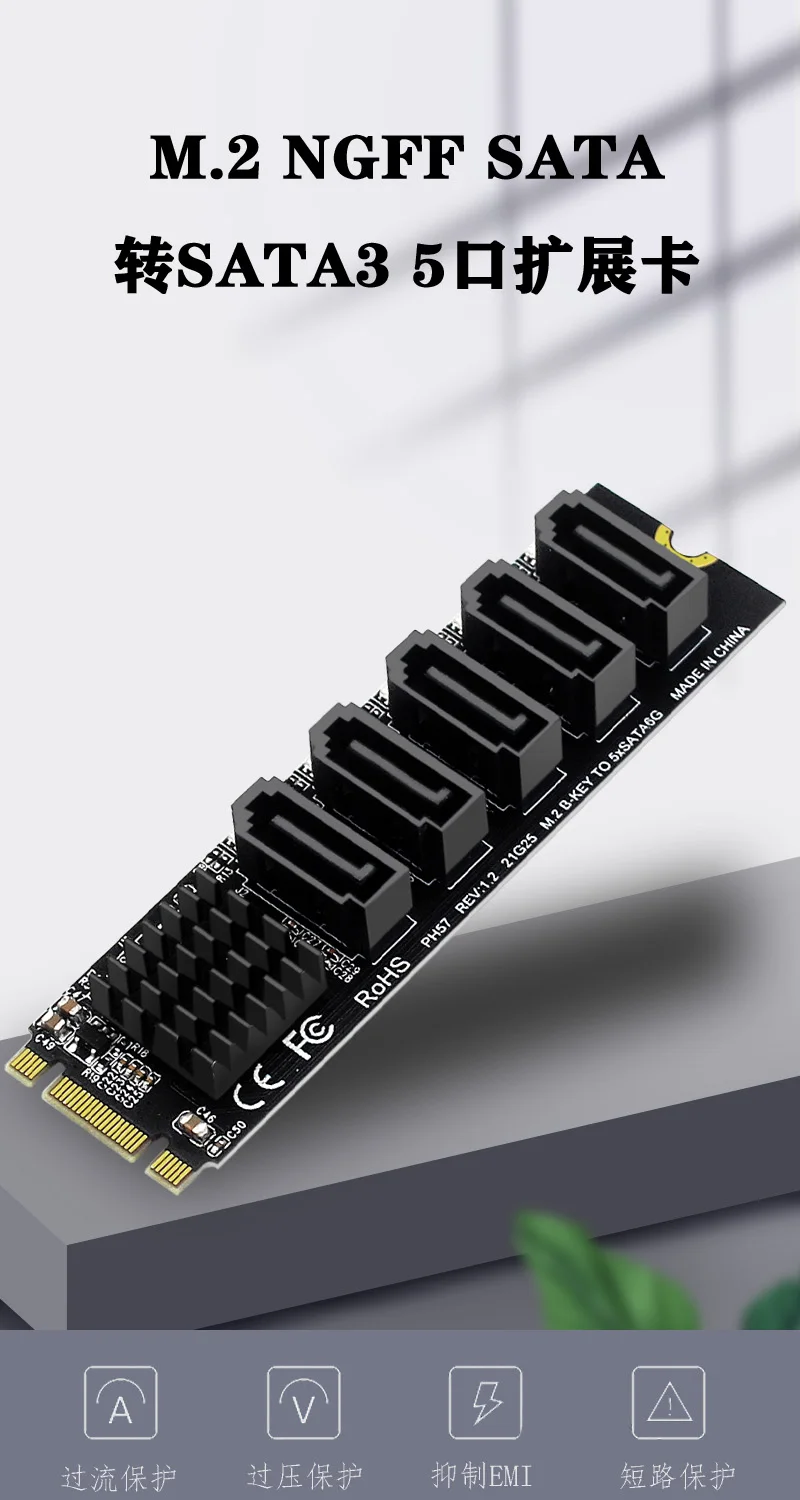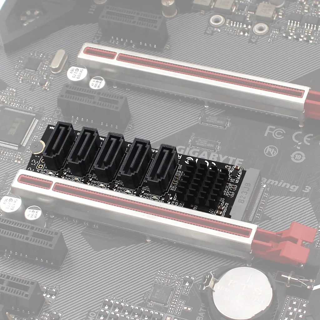 Comprar Accesorios de tarjeta adaptadora, expansión SATA de 5 puertos para SATA III 6 GB/S M2 PCIe/NGFF PH56/PH57 M.2, expansión de computadora JMB585/JMB575