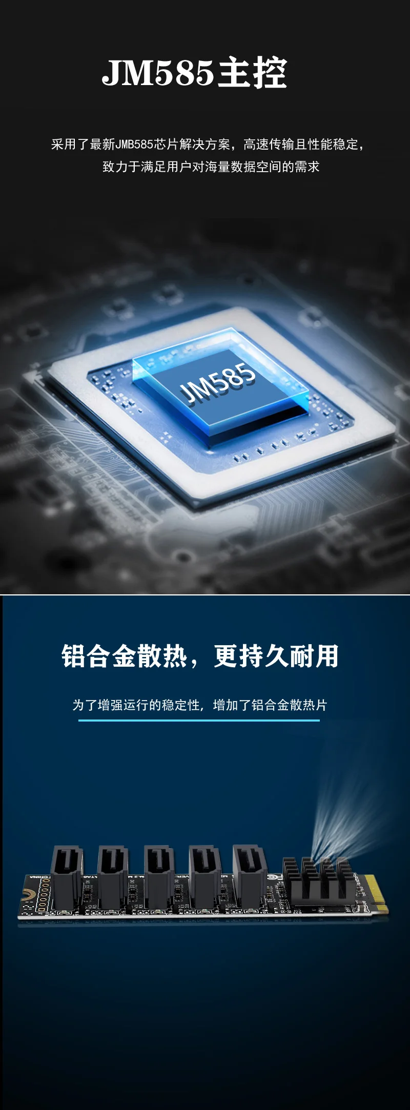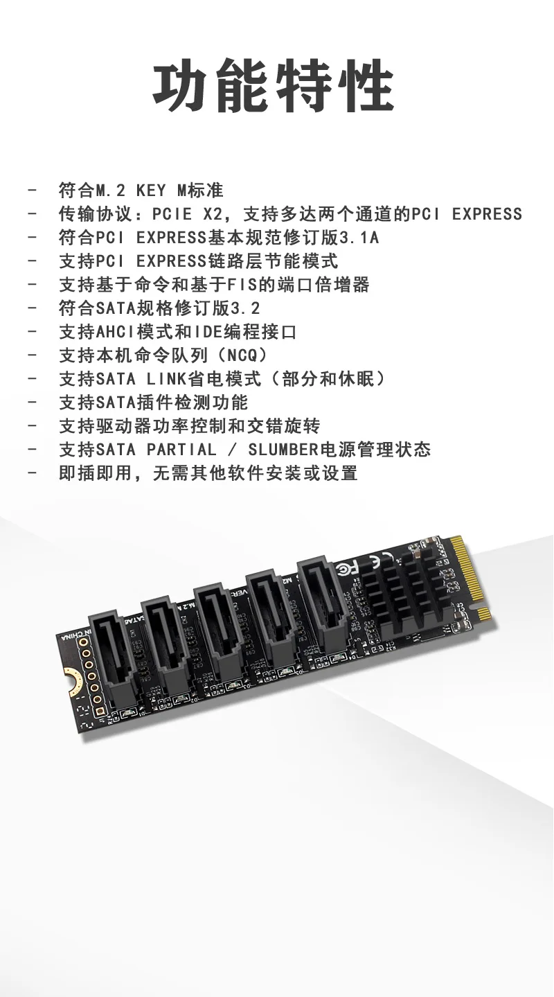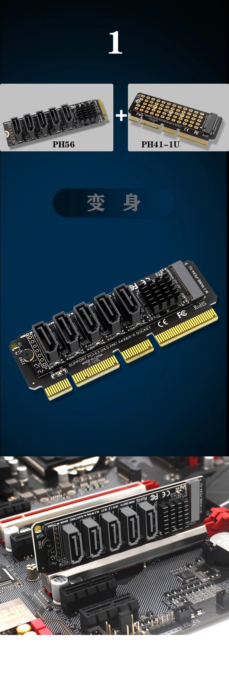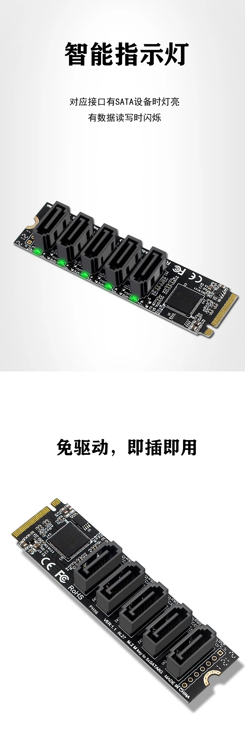 Comprar Accesorios de tarjeta adaptadora, expansión SATA de 5 puertos para SATA III 6 GB/S M2 PCIe/NGFF PH56/PH57 M.2, expansión de computadora JMB585/JMB575