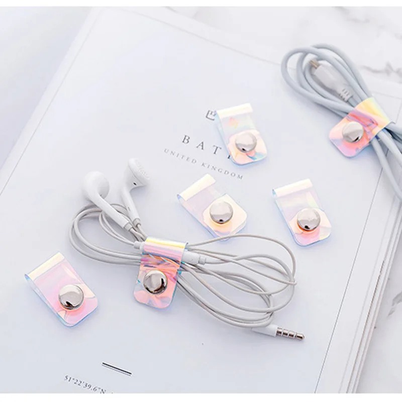 Accesorios de viaje con láser transparente, enrollador de Cable, Protector de auriculares, soporte para teléfono USB, organizador de hebilla, accesorio, organizador