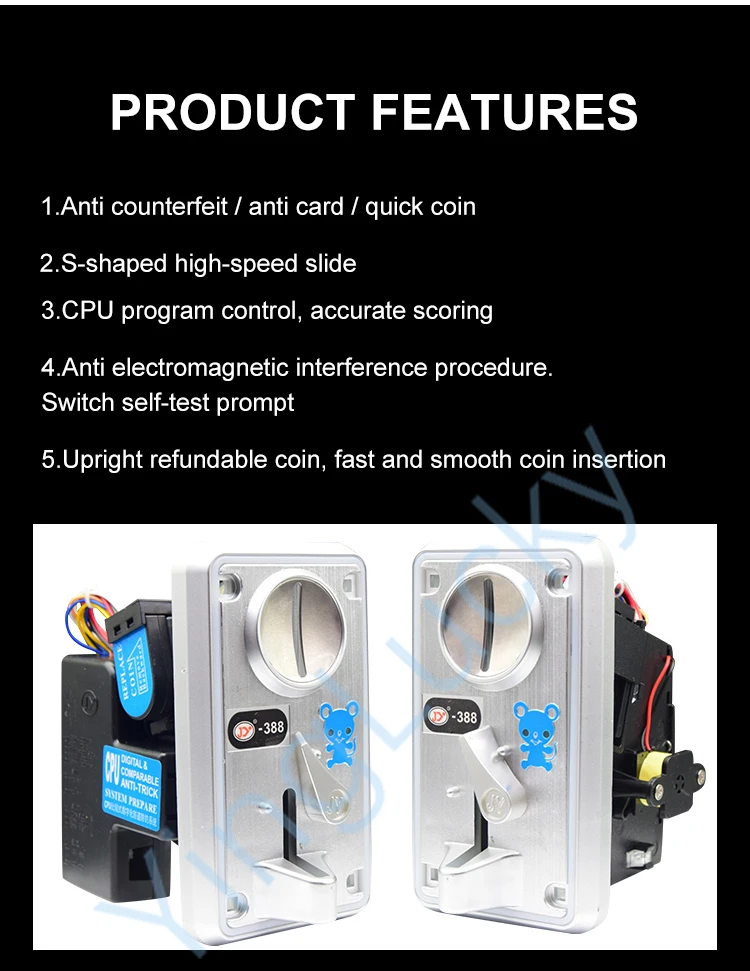 El aceptador de monedas multiarco con luz LED se puede utilizar para máquina arcade, máquina de garras, máquina de grúa oscilante para coche