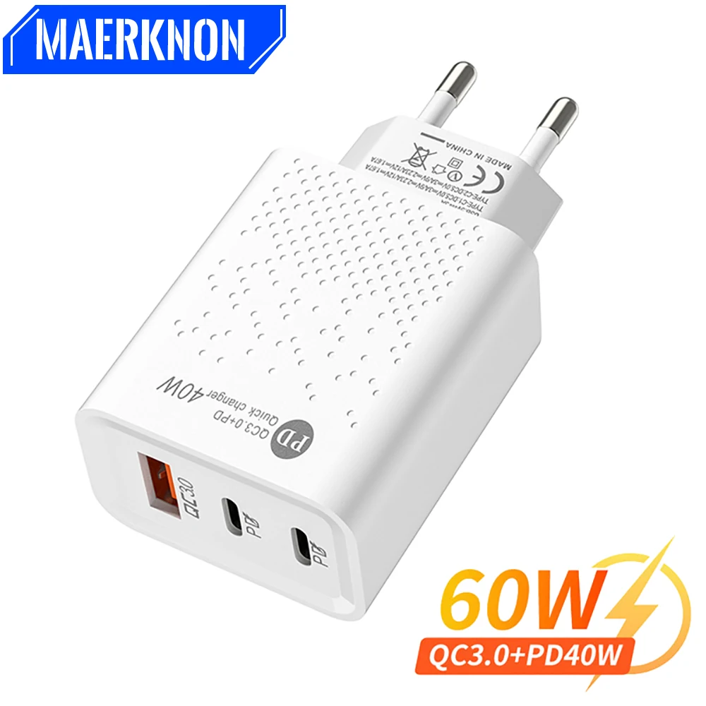 Comprar Acgicea-cargador USB C de carga rápida, adaptador de corriente PD, 60W, 3,0, para Iphone, Xiaomi, Samsung