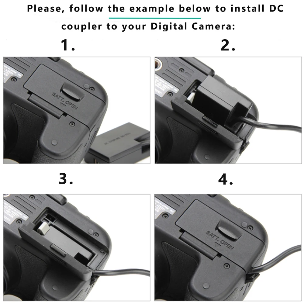 Especificación del producto del adaptador de corriente CA:Potencia nominal: 24WEntrada: 100 V-240 V CA 50-60 HzSalida: CC 8,4 V/2,0 A.Color negroEl adaptador de fuente de alimentación de CA ACK-E18 y el kit de batería simulada LP-E17 reemplazan la batería LP-E171.La cámara se puede conectar al adaptador y al cable de alimentación, utilizado con el enchufe.2. Tiro en estudio, tiro en interiores, todavía tiro, usando cargadores de enchufe.3.Resuelva el problema del reemplazo frecuente de la batería y cumpla con varios usos de disparo flexibles.4. Deje que la fotografía ya no se pierda momentos maravillosos.5.Múltiples funciones de seguridad que funcionan juntos para brindar la máxima protección y rendimiento para sus dispositivos.Compatible con los siguientes modelos de cámaras Canon:Canon Rebel T6i, T7i, T8i, T6s,Canon EOS SL2, SL3,EOS RPCanon EOS 750D, 760D, 800D, 850D, 200D, 200D II, 250D, 8000D, 9000D, 77DCanon Kiss X8i, Kiss X10i, Kiss X9i, Kiss X10, Kiss X9NOTA: NO apto para Canon EOS M3, M5, M6, T6, T7Si no está seguro de la compatibilidad, comuníquese con el servicio de atención al cliente de Probty para obtener más información.Lista de paquetes:1 adaptador de corriente CA.1 cable de CA de enchufe.1 acoplador CC DR-E18