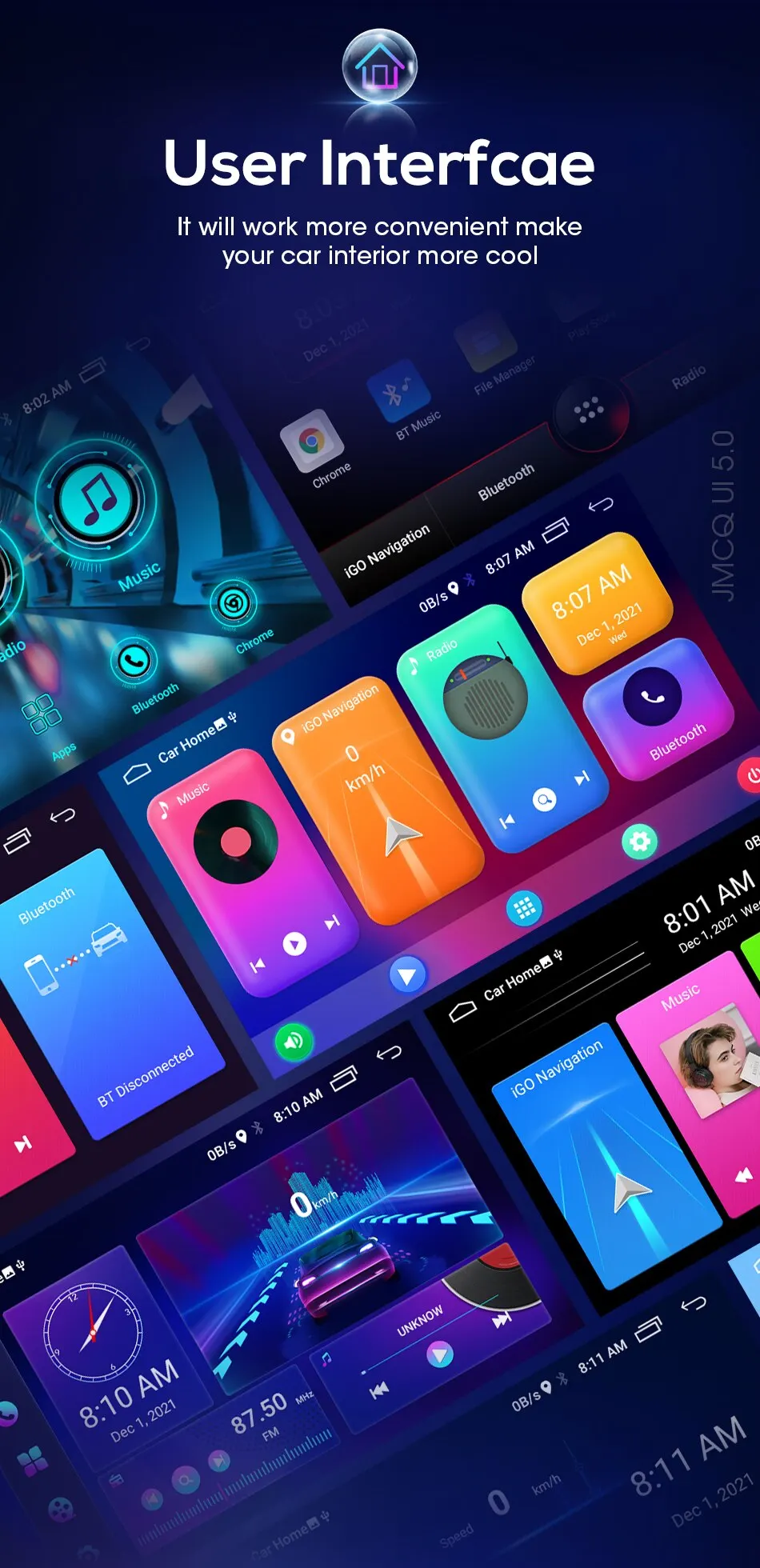 • Característica de pantalla dividida :La Función de pantalla dividida le permite realizar múltiples tareas y usar múltiples aplicaciones simultáneamente, lo que facilita la navegación y el control de su música y otras configuraciones.