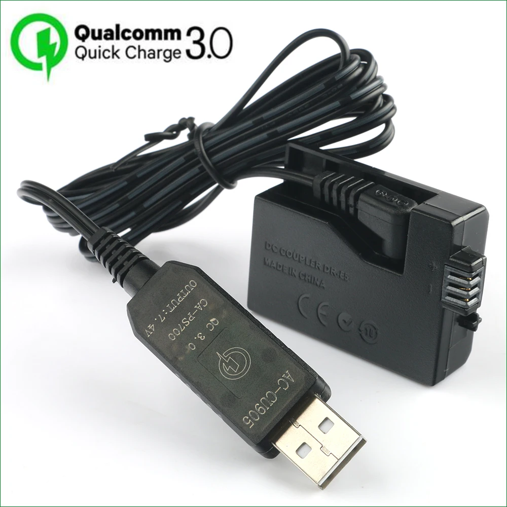 Comprar Acoplador de batería ficticia QC3.0 USB a LP E5 LPE5, ACK-E5 de batería DR-E5 CC para Canon EOS 450D 500D 1000D Kiss F X2 X3 Rebel XSi XS T1i