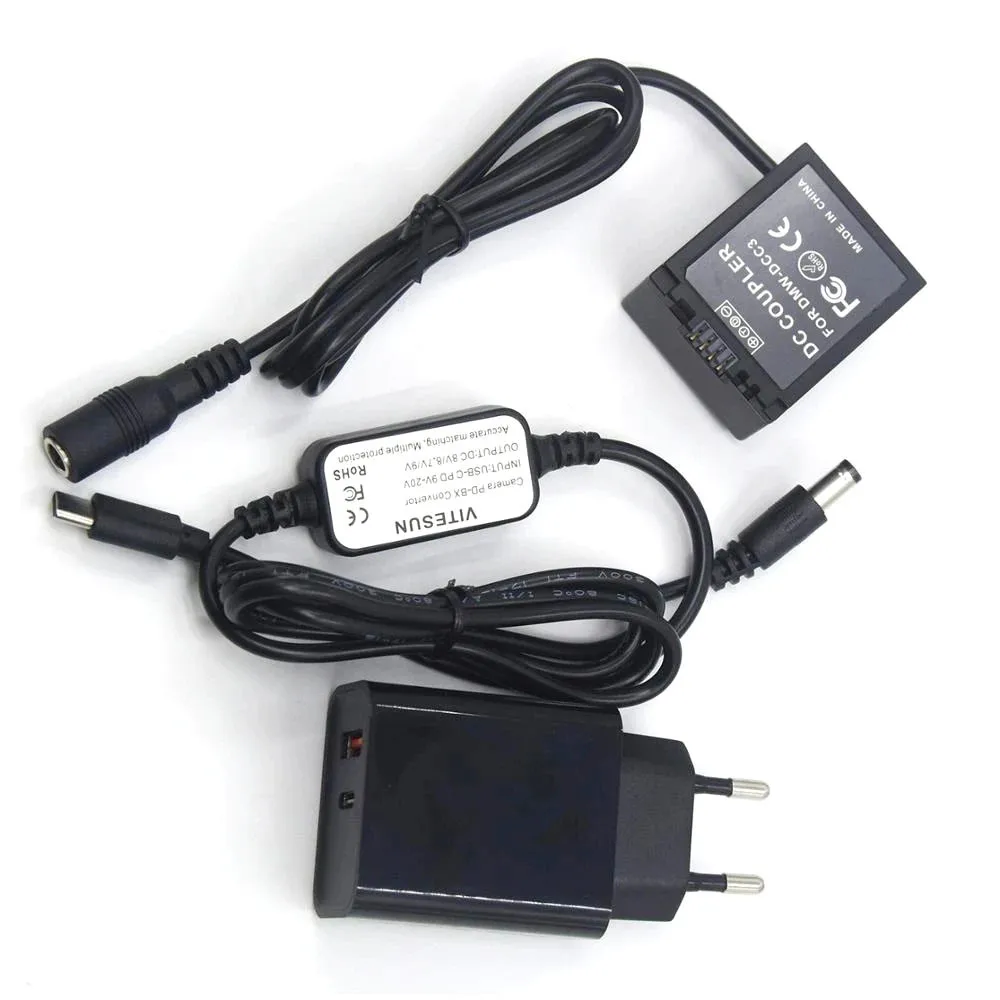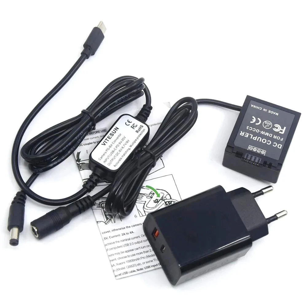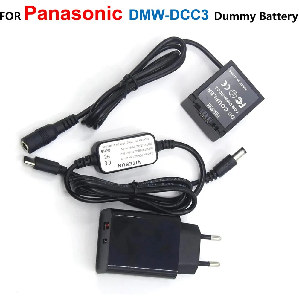 Comprar Acoplador CC de DMW-DCC3, batería simulada de DMW-BLB13 + Cable de alimentación USB tipo C + cargador PD para Panasonic Lumix DMC-G1 GH1 GF1 G2 G10 G2A G2K