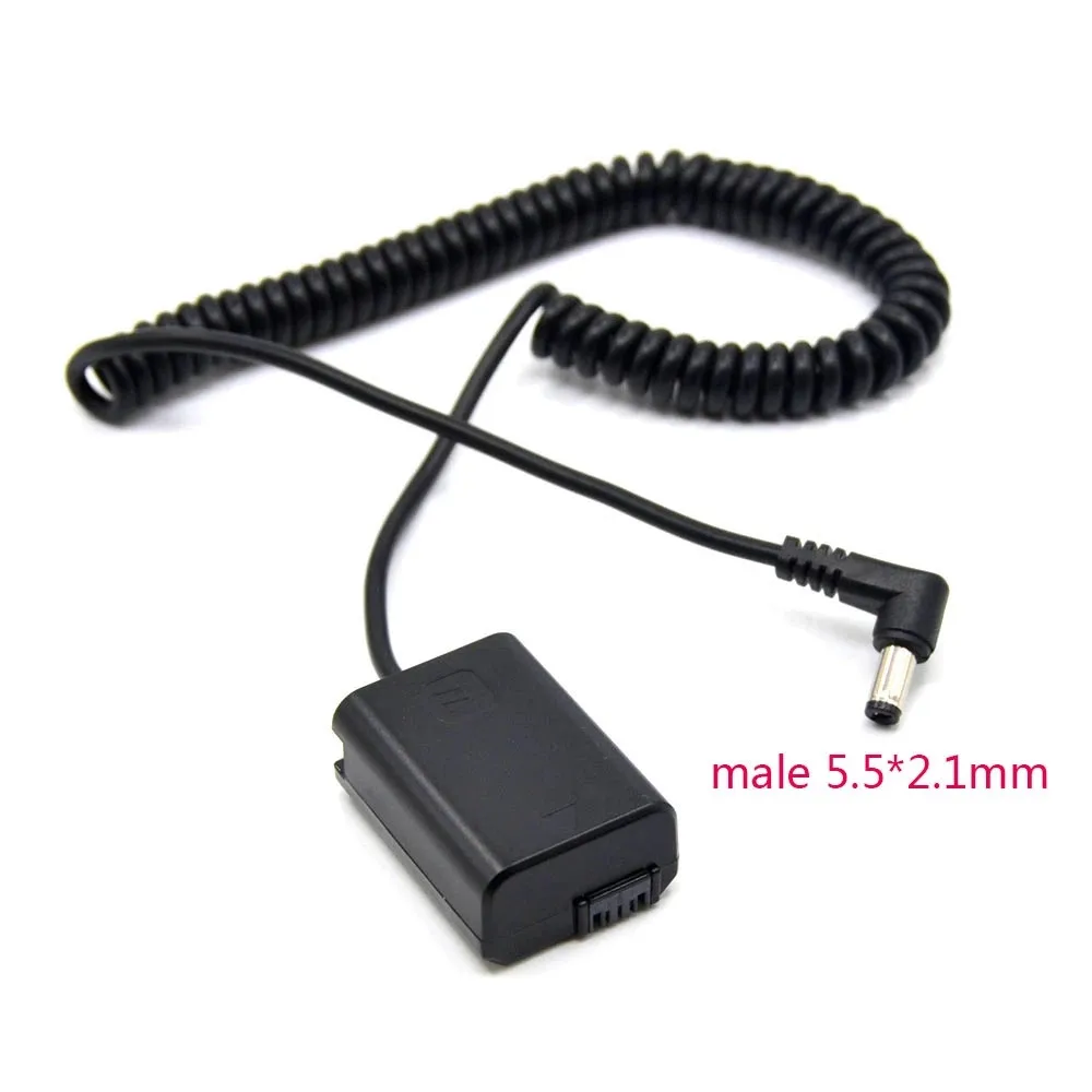Acoplador CC FW50 NP-FW50, batería simulada, Cable de alimentación con resorte de cabeza macho, 5,5x2,1mm para Sony ZV-E10 A3500 A5000 NEXC5 NEX-5T A7RII A7R