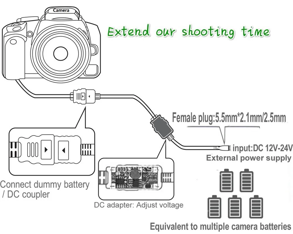 (1) El cable reductor de CC puede encontrar fácilmente una fuente de alimentación externa que cumpla con los requisitos y puede proporcionar un requisito de energía instantáneo más adecuado para el obturador de la cámara.