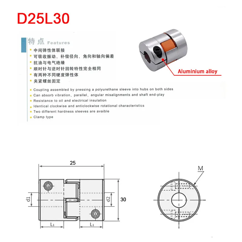Acoplador de eje Flexible D25L30, acoplamiento de motor paso a paso, 6,35/8/9, 5/10/12mm