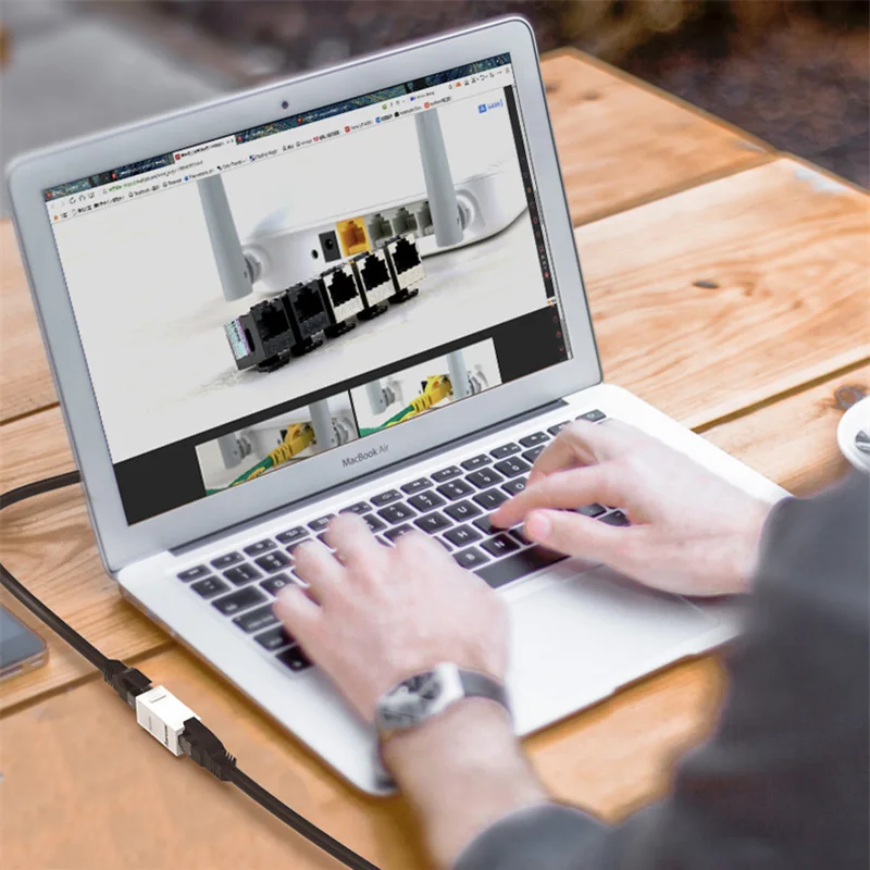 •Este acoplador en línea conecta dos cables separados de categoría 5e/6 (dependiendo del tipo que compró) a través de un acoplador keystone RJ45.