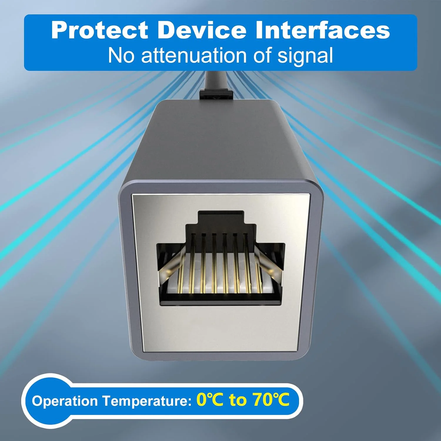 Diseño duradero de aleación de aluminio: con una carcasa de aluminio suave, el conector Ethernet es elegante, duradero y portátil, y también es mejor para la disipación del calor.