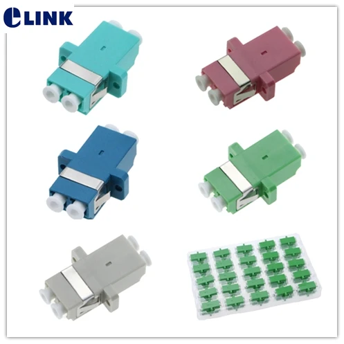 Comprar Acoplador de fibra LC dúplex, Conector de fibra SM MM OM3 OM4 OM5 ftth, verde, Azul, Gris, aqua Magenta optica, suministro de fábrica, ELINK