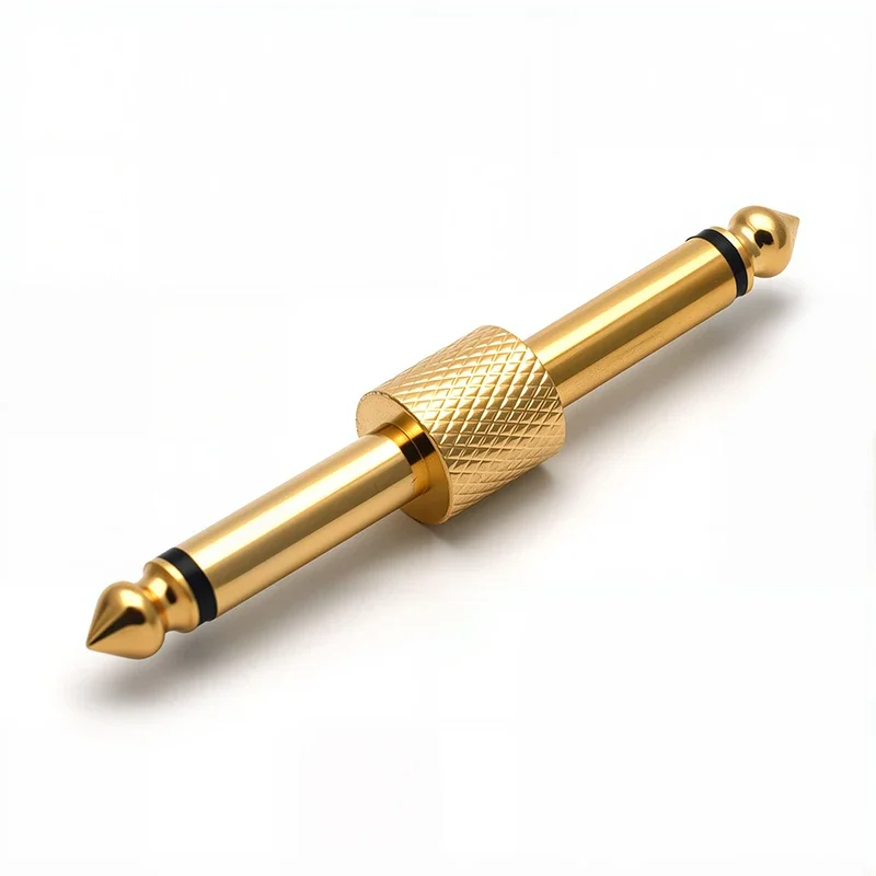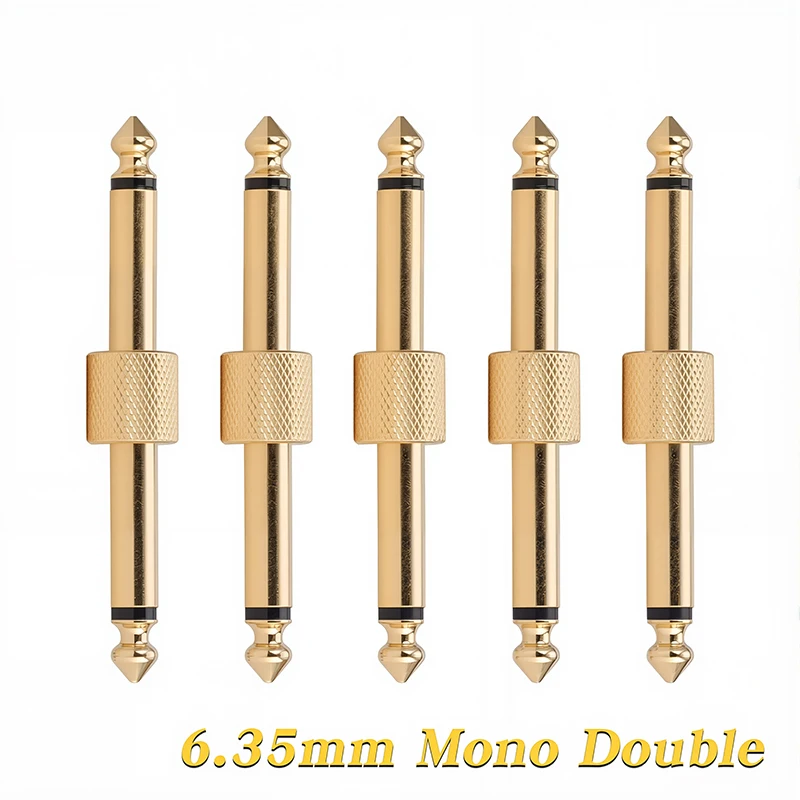 Acoplador de pedalera chapado en oro, enchufe de soldadura macho a macho de 6,35 mm para conectar pedales de efectos de guitarra sin cables