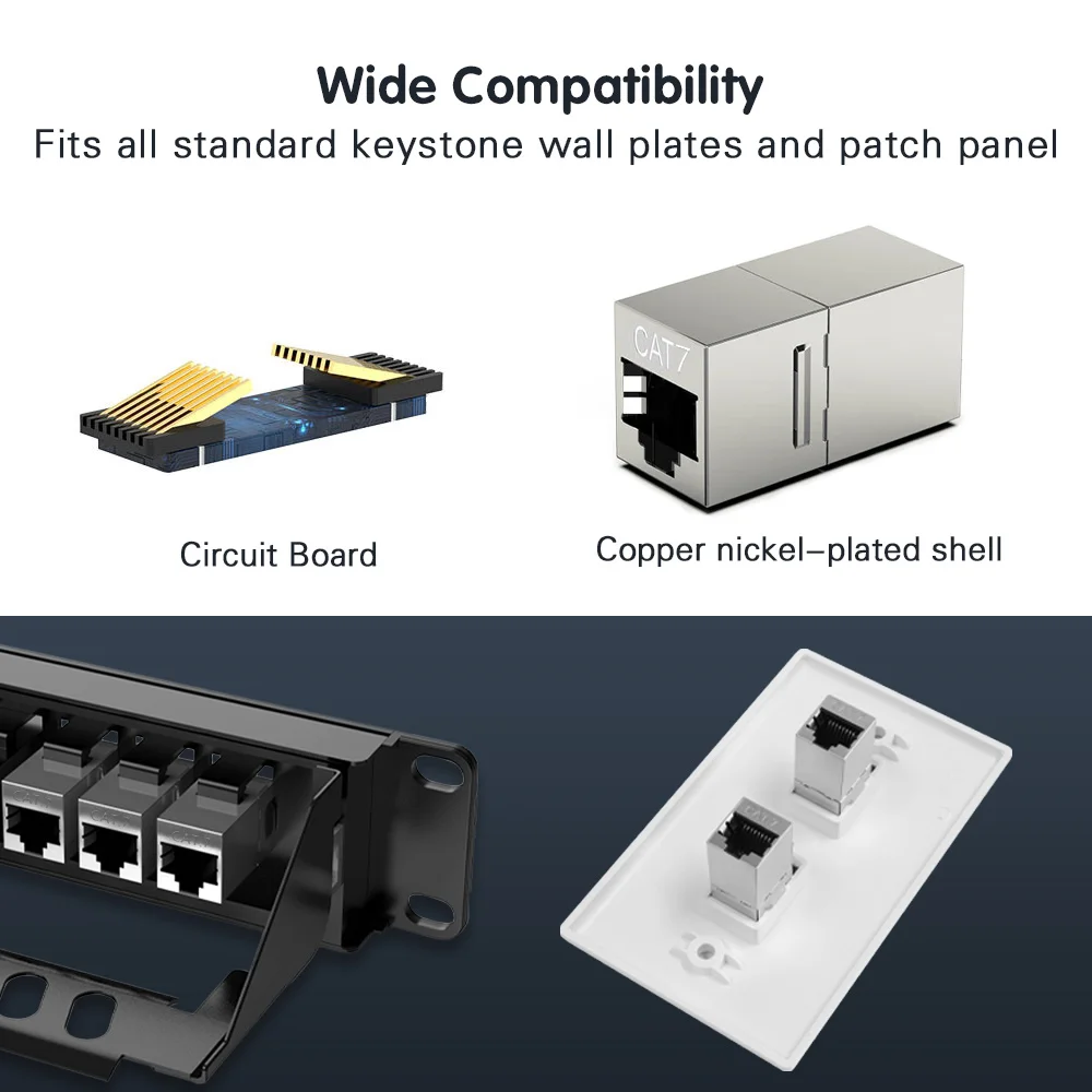 Contenido del paquete: Acopladores Keystone CAT7 RJ45, ofrecen 18 meses de garantía por problemas de calidad.Úselo sin preocupaciones.