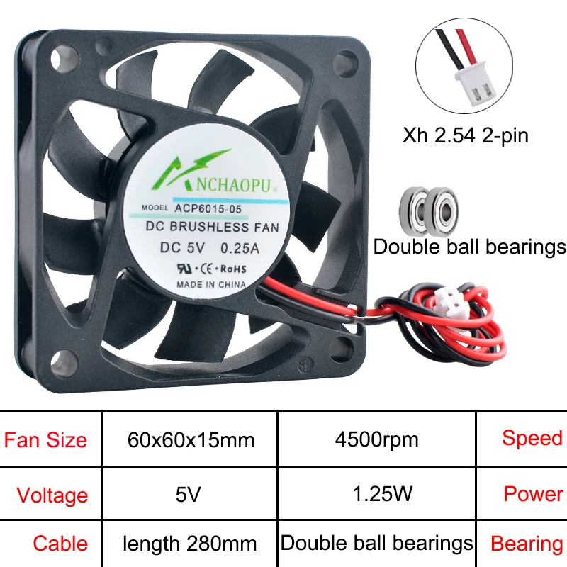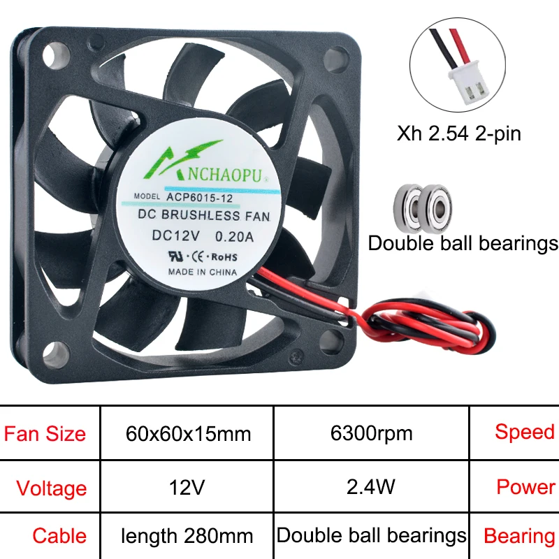 Comprar ACP6015 Ventilador de refrigeración axial de 60 mm 60 x 60 x 15 mm con diseño compacto Ventilador CC de 2 pines para cargadores Fuentes de alimentación Opciones de 5 V 12 V 24 V