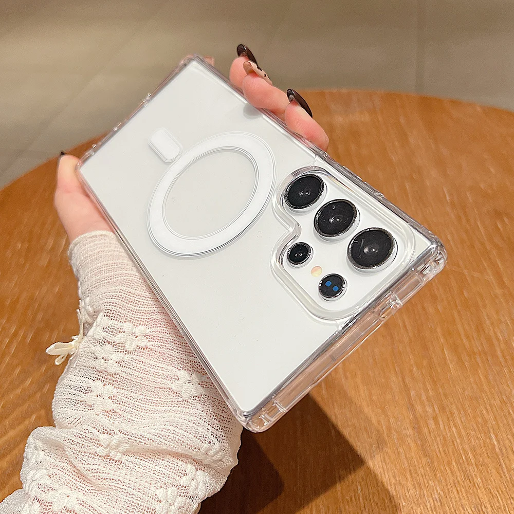 Thin Clear Acrylic For Magsafe Magnetic Phone Case For Samsung S25 S24 Ultra S21 S23 FE S22 Plus A56 A55 A36 A35 A16 A15 Cover