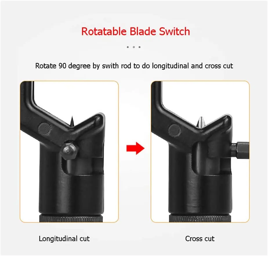 3. El seguidor de cable estilo "rodillo" proporciona estabilidad al cable y permite un movimiento más fácil de la herramienta a lo largo del cable. La hoja gira 90 grados activando la palanca de la hoja, lo que permite una fácil preparación a mitad del tramo (zumbido y corte).