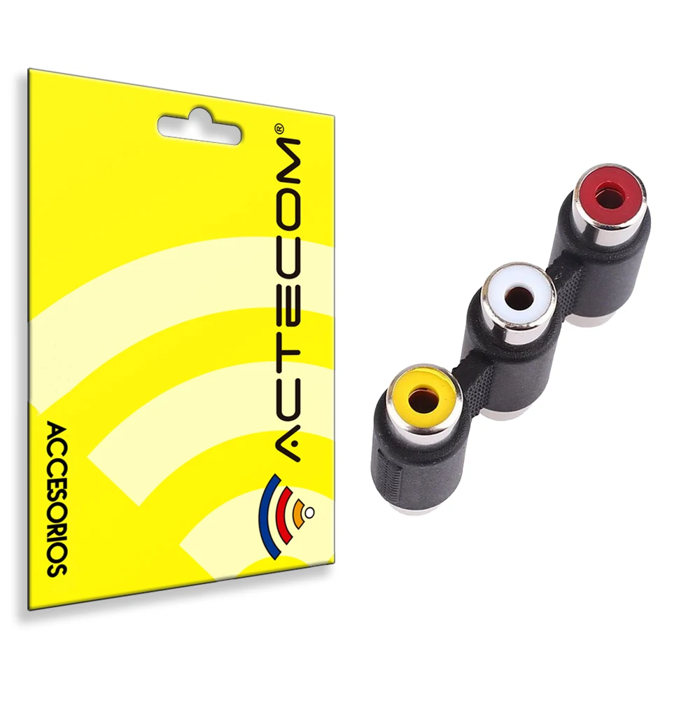 ACTECOM Adaptador PROLONGADOR 3 RCA Video Y Audio Hembra AV Empalme