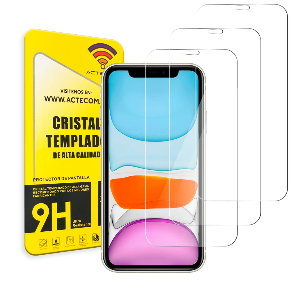 Comprar ACTECOM Pack de 3 Protector de Pantalla Compatible con Iphone 11/XR Cerrado Cristal Templado 6.1" CASE FRIENDLY 9H 2.5D (3 uds.)