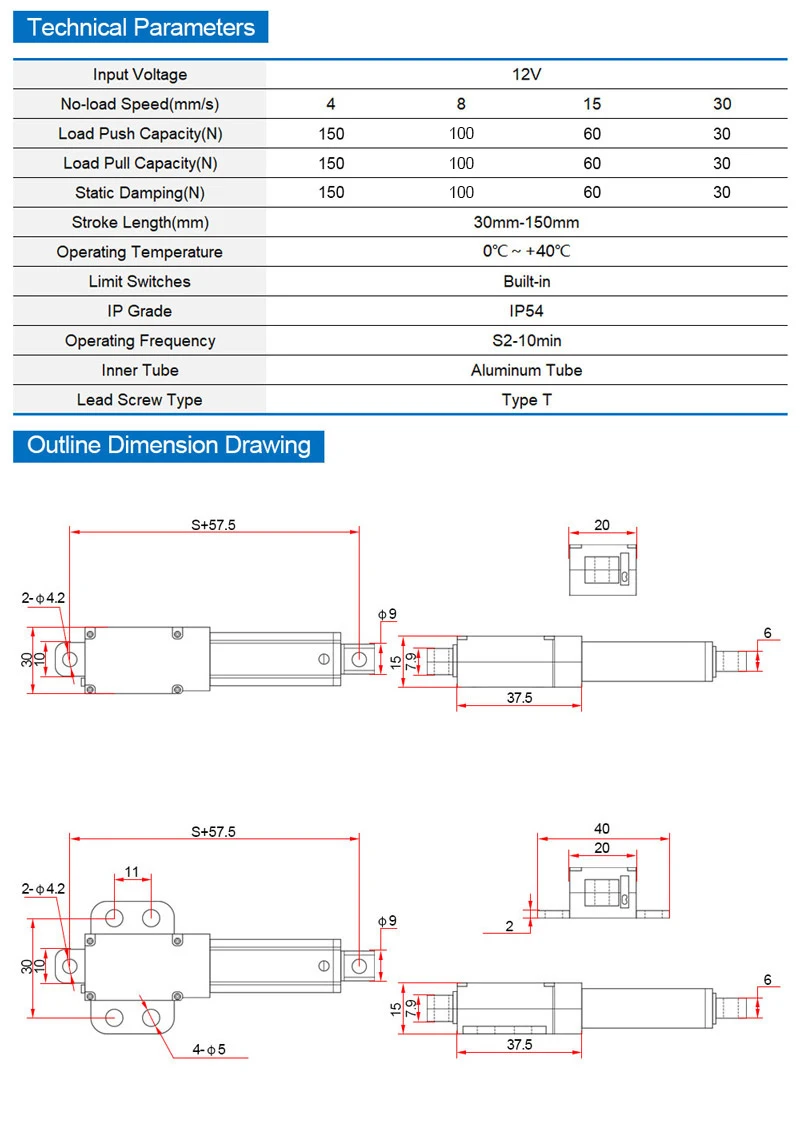Comprar Actuador lineal eléctrico Mirco, controlador de Motor Mini, varilla de empuje eléctrica, Putter, 50mm, DC 12V, 30N/60N/100N/150N
