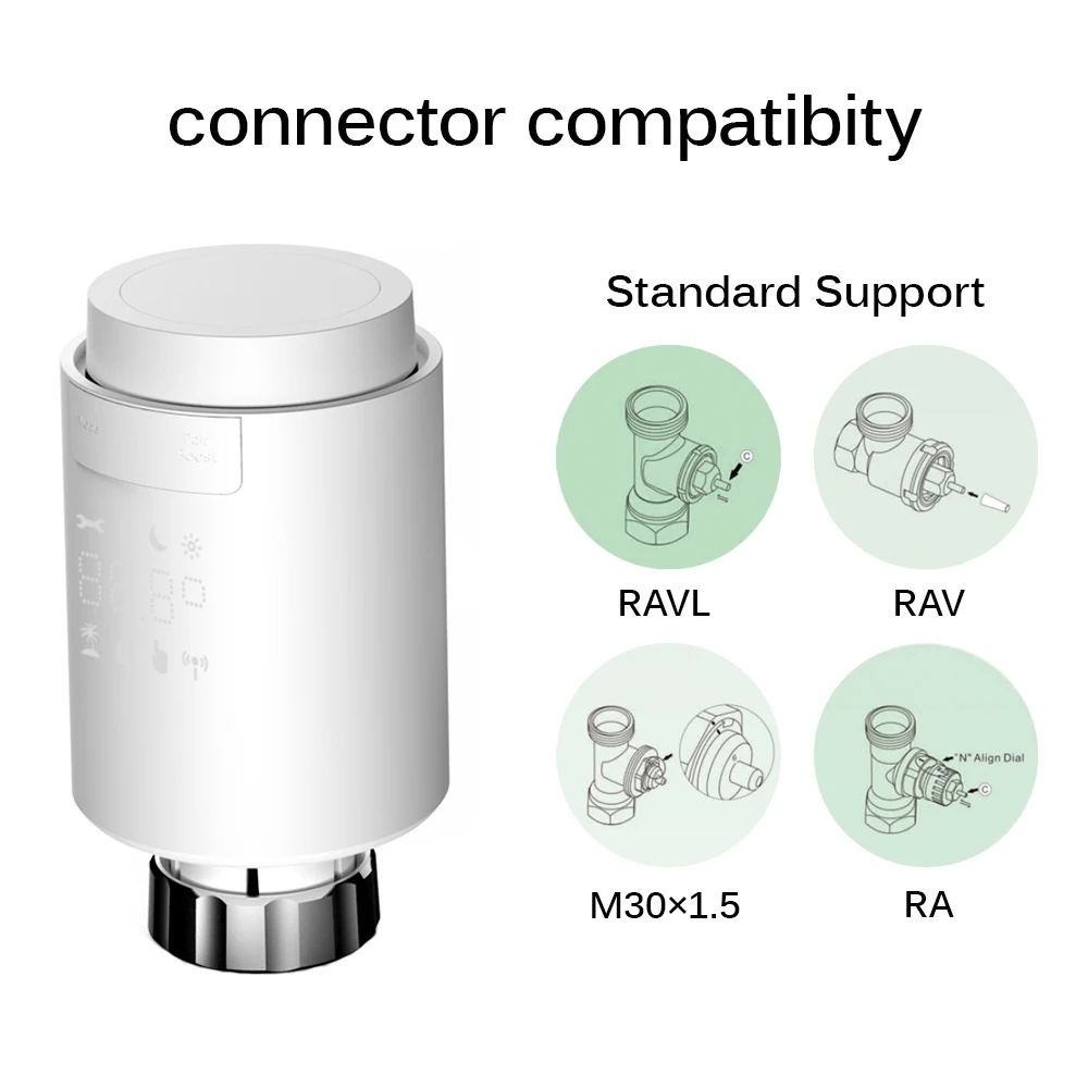1. Termostato del actuador del radiador WiFi Smart Tuya: Nuevo diseño mini con pantalla LED simple y clara en el cuerpo, el termostato del radiador tiene pantalla de visualización digital LED y dos secciones de pilas AA, que es una válvula especial que se utiliza en cooperación con el radiador de calefacción. Temperatura interior establecida artificialmente, Utilizado principalmente en el sistema de calefacción por suelo radiante para controlar el cierre y la apertura de la tubería 2MQTT Setup Available.