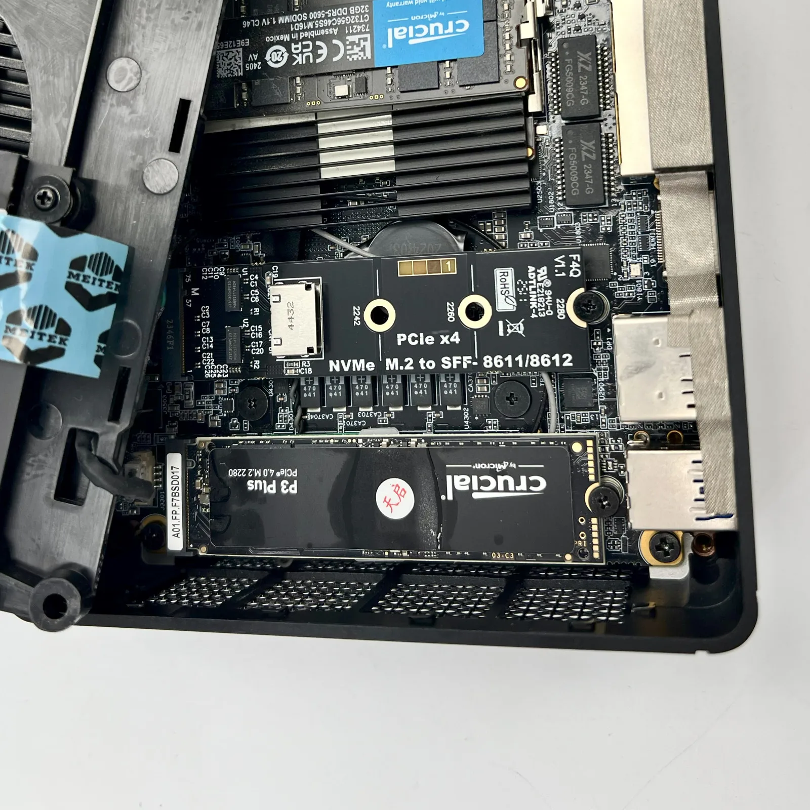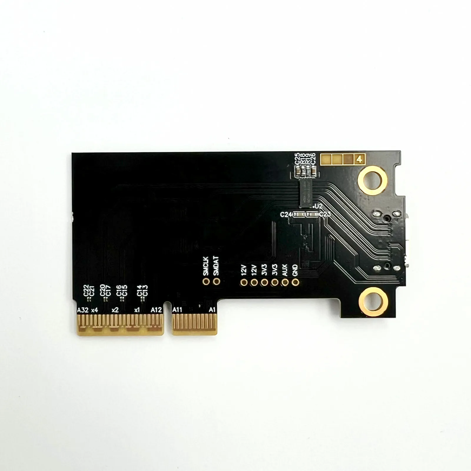 Aplicación del producto:Se utiliza para la conexión externa de tarjetas gráficas u otros dispositivos PCIe.En comparación con la solución adaptadora tradicional Thunderbolt, el ancho de banda efectivo de OCuLink bajo PCIe 5.0x4 puede alcanzar 128 Gbps, superando con creces la solución Thunderbolt.