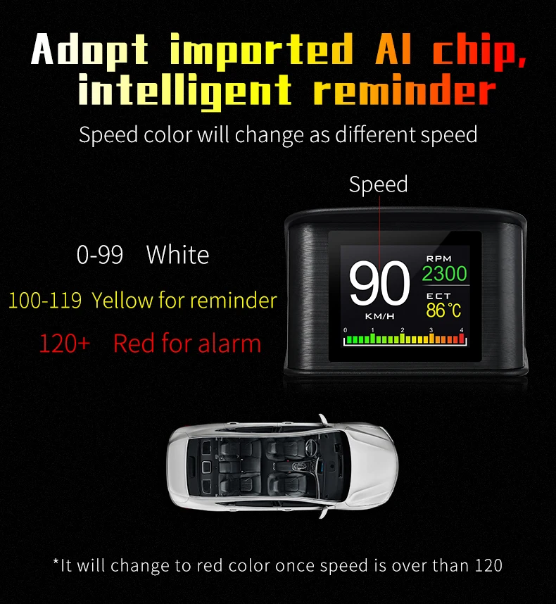 • Visualización del Código de falla del motor:El HUD P10 muestra los códigos de falla del motor, lo que le permite identificar y abordar rápidamente cualquier problema con el motor de su automóvil.