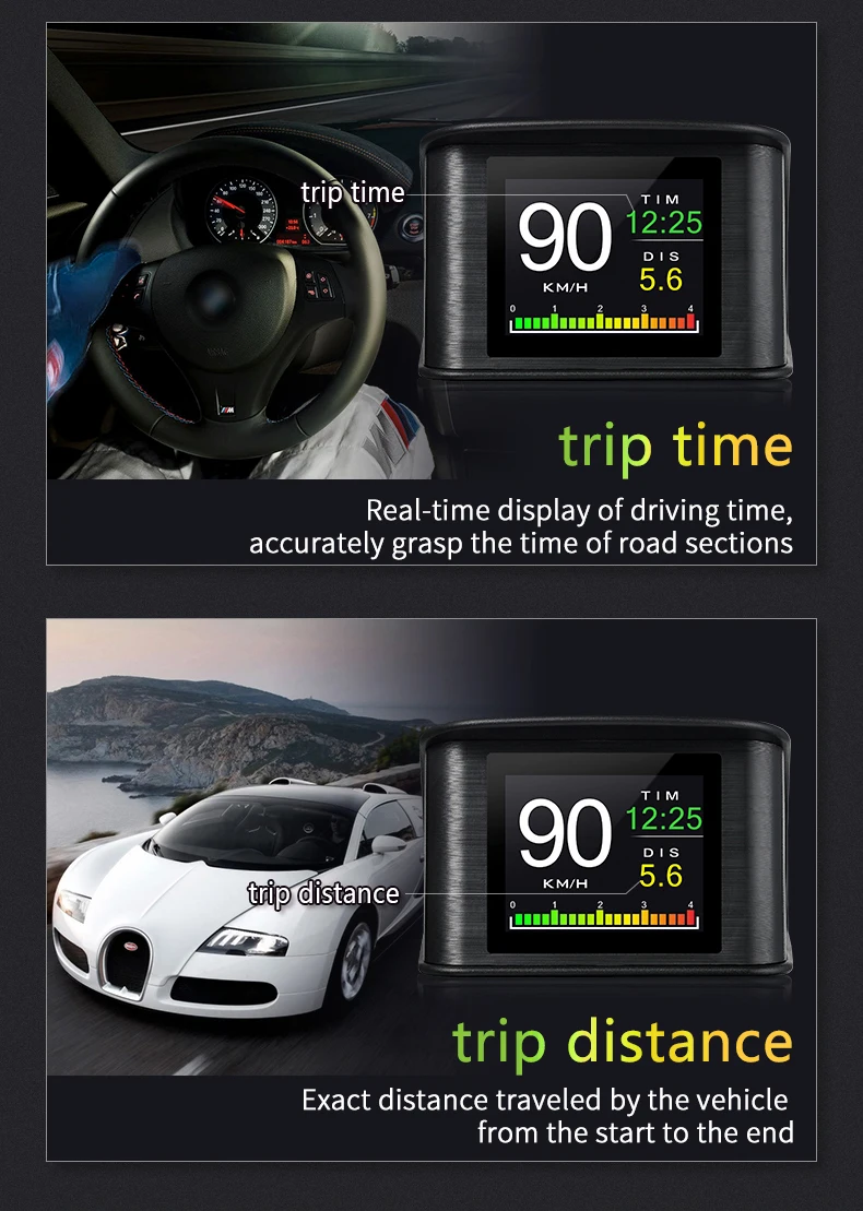 • Velocímetro en tiempo real:El HUD P10 Proporciona lecturas precisas de velocidad en tiempo real, lo que le permite mantenerse seguro y dentro del límite de velocidad en todo momento.