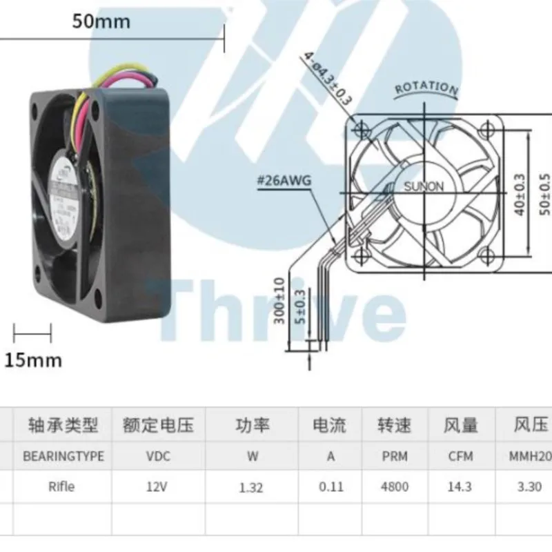 Product Description This brand new ADAA AD5012HB-D73 industrial cooling fan is a compact 50x50x15mm solution, expertly designed for precise thermal management of miniature electronic components and chips. Operating on a stable 12V DC with 3-wire connectivity, it features durable dual ball bearings for reliable and efficient cooling performance. Key Selling Points: Compact High-Performance Cooling: Delivers effective airflow with 4800 RPM and 14.3 CFM in a miniature 50x50x15mm footprint, ideal for chip cooling and dense embedded systems where space is at a premium. Efficient 12V DC Operation: Operates on a standard 12V DC with a low 0.11A current (1.32W power consumption), providing energy-efficient yet powerful thermal solutions for various electronic devices. Superior Static Pressure: Generates a significant 3.30 MMH2O of static pressure, making it highly effective at pushing air through heatsinks, small ducts, and other restrictive pathways common in compact electronic enclosures. Long-Life Dual Ball Bearings: Equipped with dual ball bearings, ensuring enhanced durability, reduced friction, and a longer operational lifespan, providing consistent and reliable equipment cooling for critical applications. 3-Wire Connectivity: Features a 3-wire connection, typically including power, ground, and a speed signal (tachometer), allowing for basic monitoring of fan status within your thermal management system. Application Areas: This high-performance micro fan is ideal for mini PCs, single-board computers (SBCs), chipset cooling, portable electronics, medical devices, security systems, small industrial control panels, and any application requiring compact cooling fans and efficient thermal solutions in confined spaces.