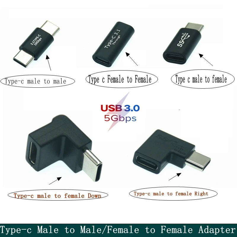 Comprar Adaptador 10Gbps 5Gbps tipo C a USB 3,0 OTG USB-C a tipo C convertidor macho a hembra cable adaptador de fecha de carga