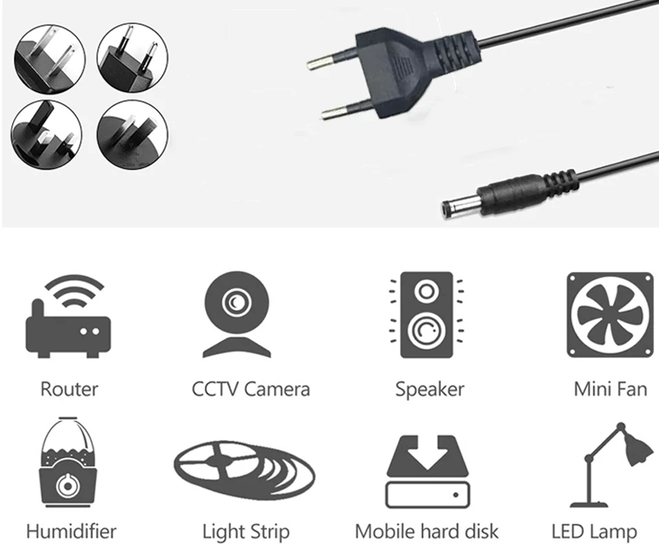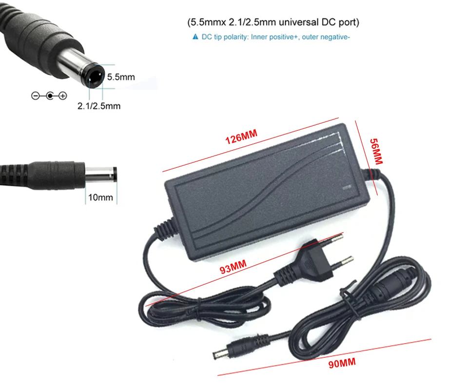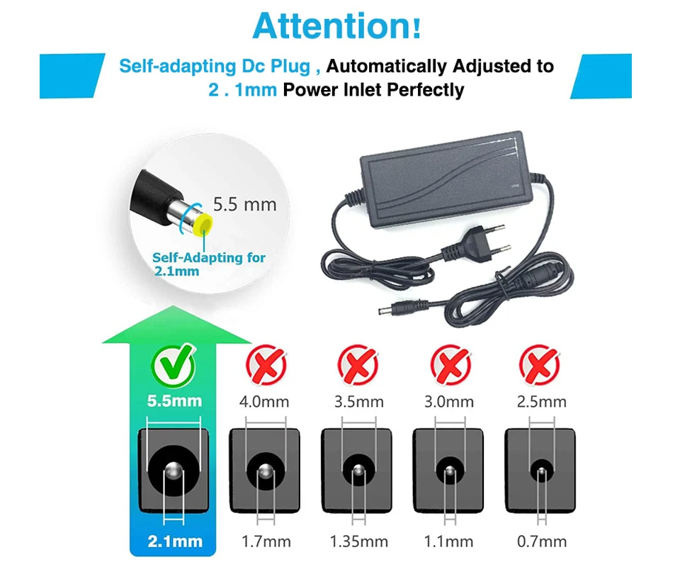 Output Adaptor Jack size : 5.5mm x 2.5mm Compatible