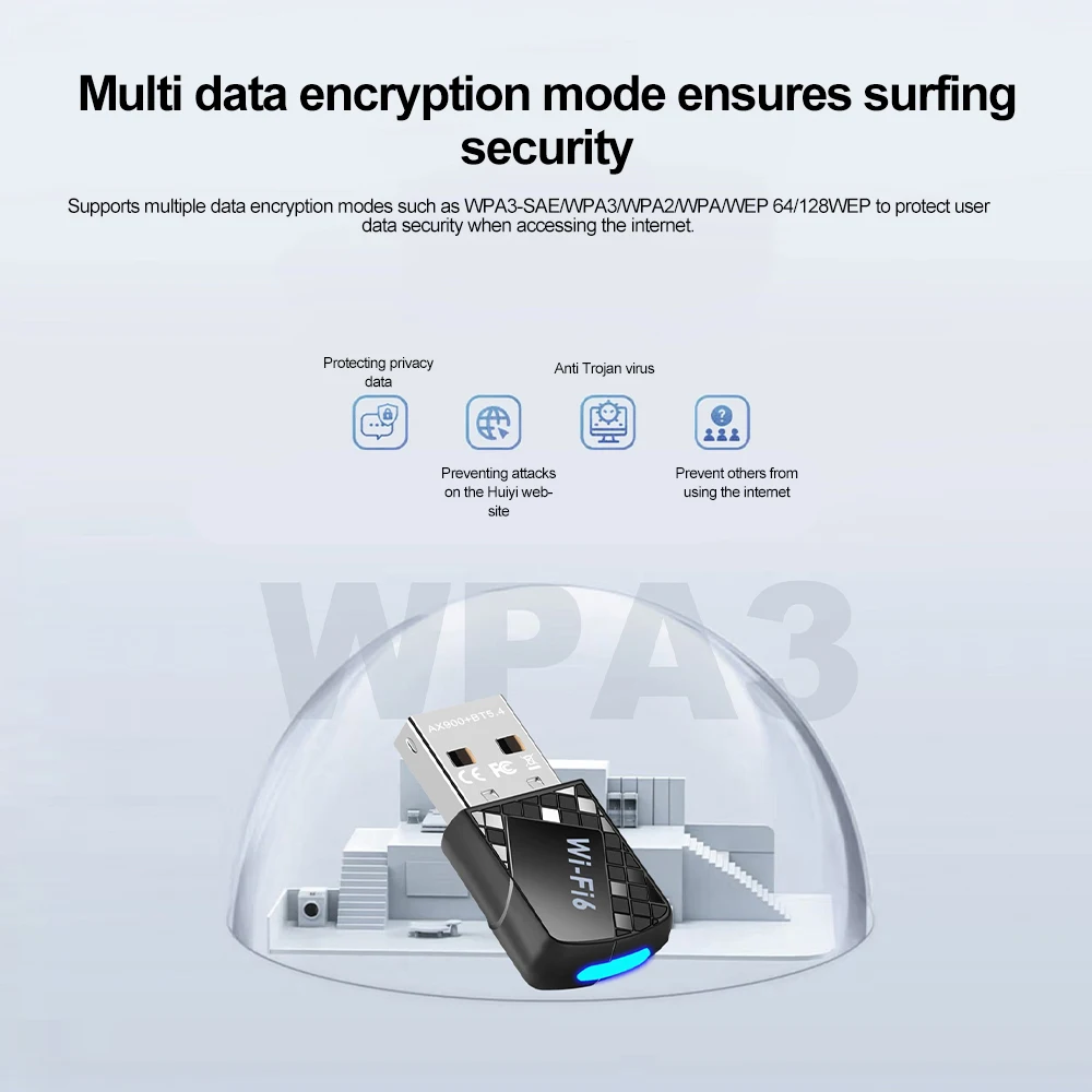 Admite mecanismos de seguridad avanzados de WPA, WPA2 y WPA3 para brindar seguridad a la conexión de red inalámbrica.