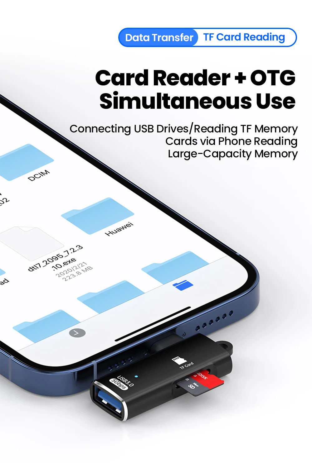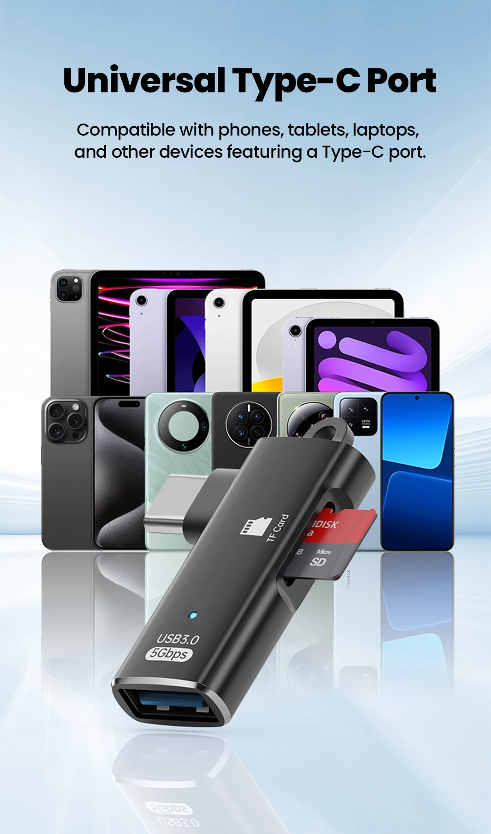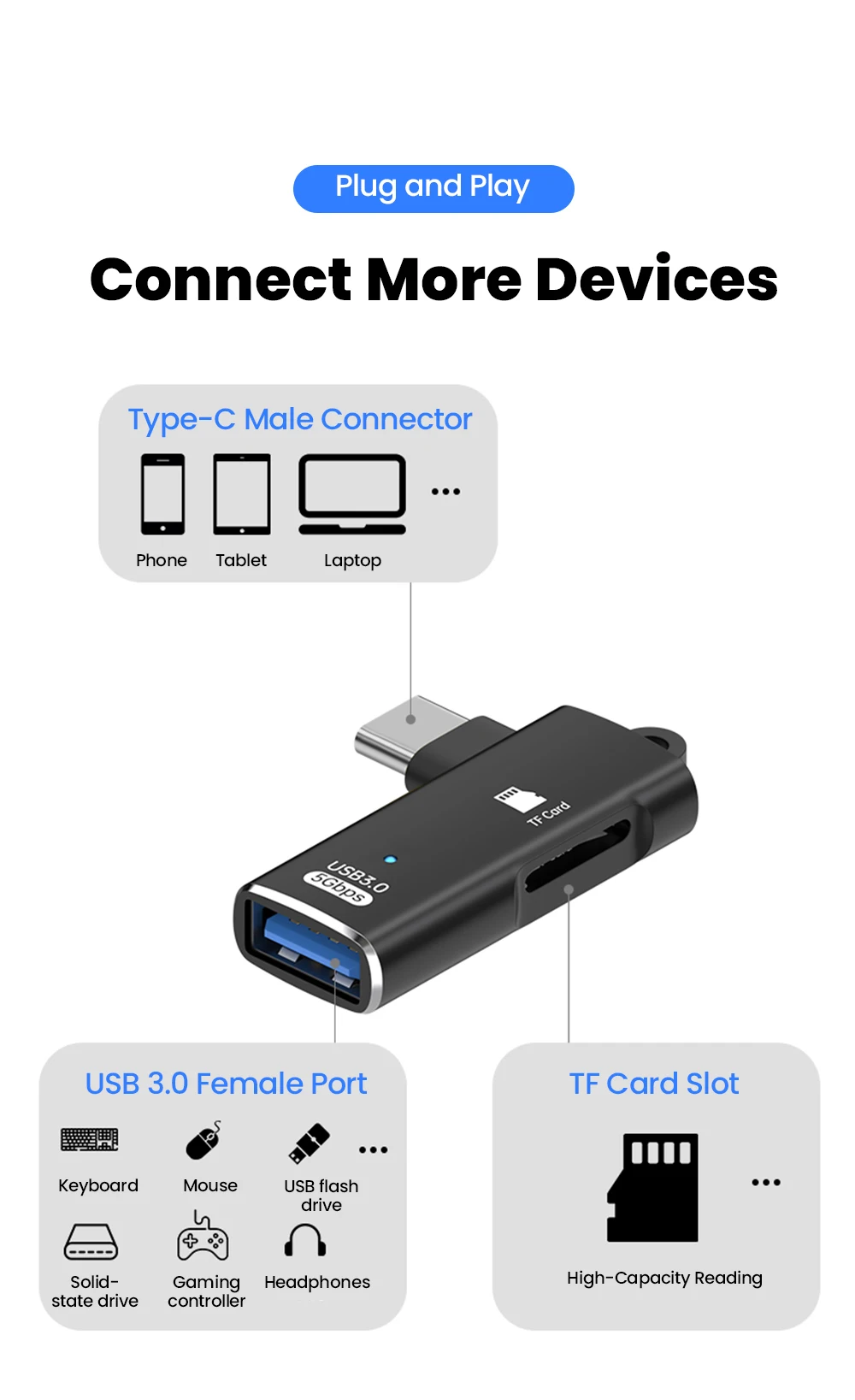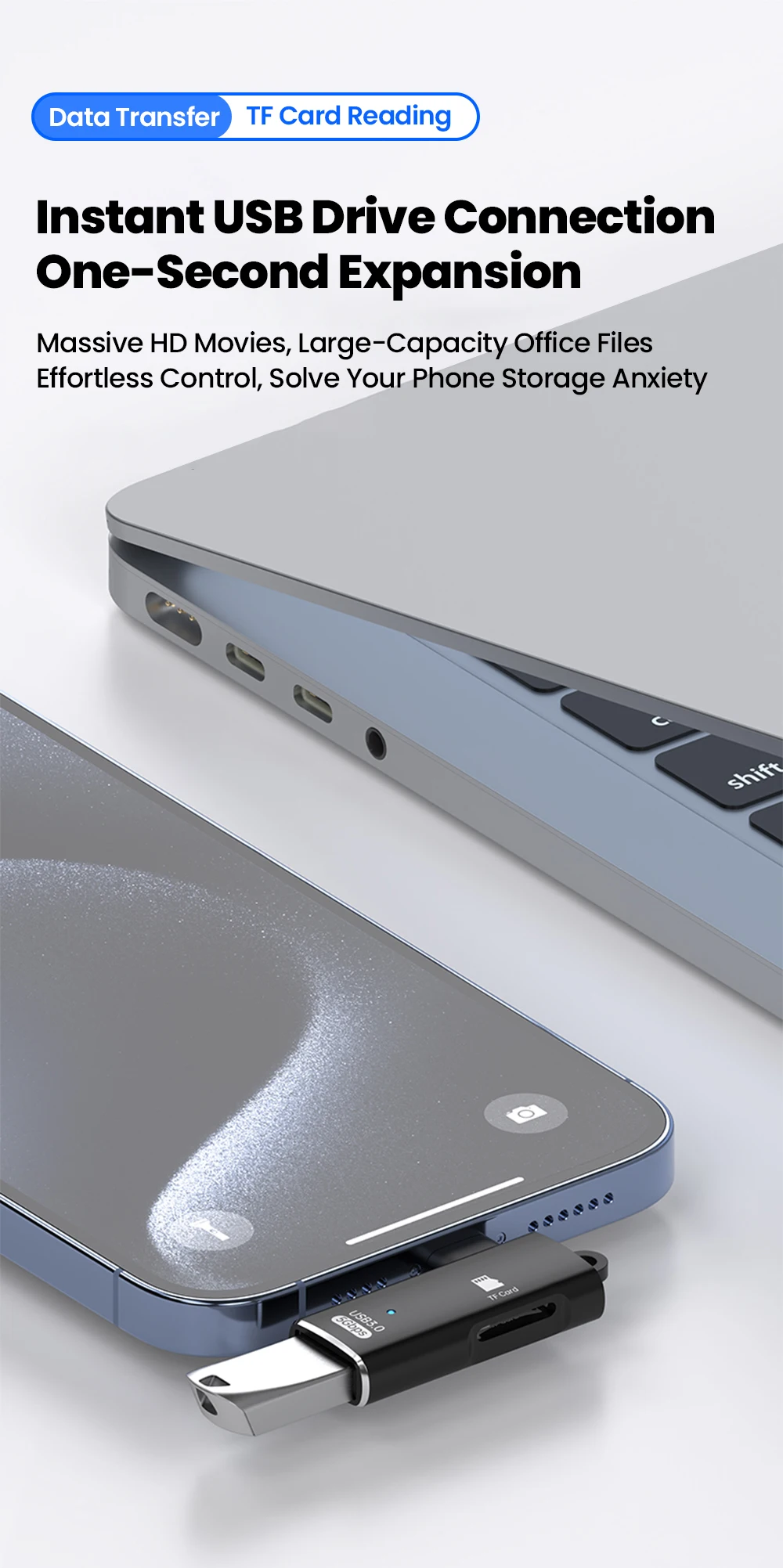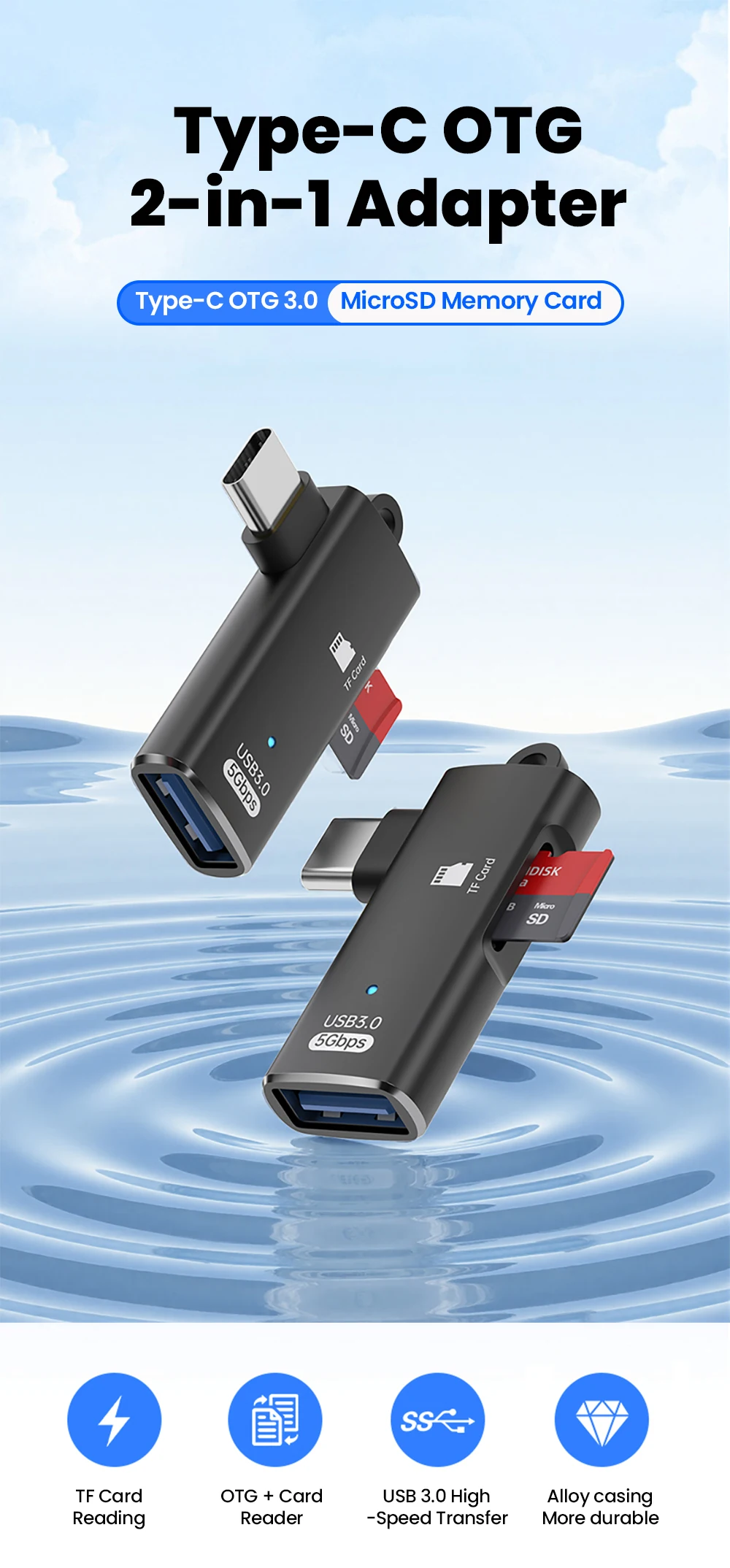 Adaptador 2 en 1 tipo C OTG, tarjeta de memoria tipo C a TF, lector de tarjetas OTG, convertidor de transferencia de datos USB3.0 para iphone 15 16, tableta portátil