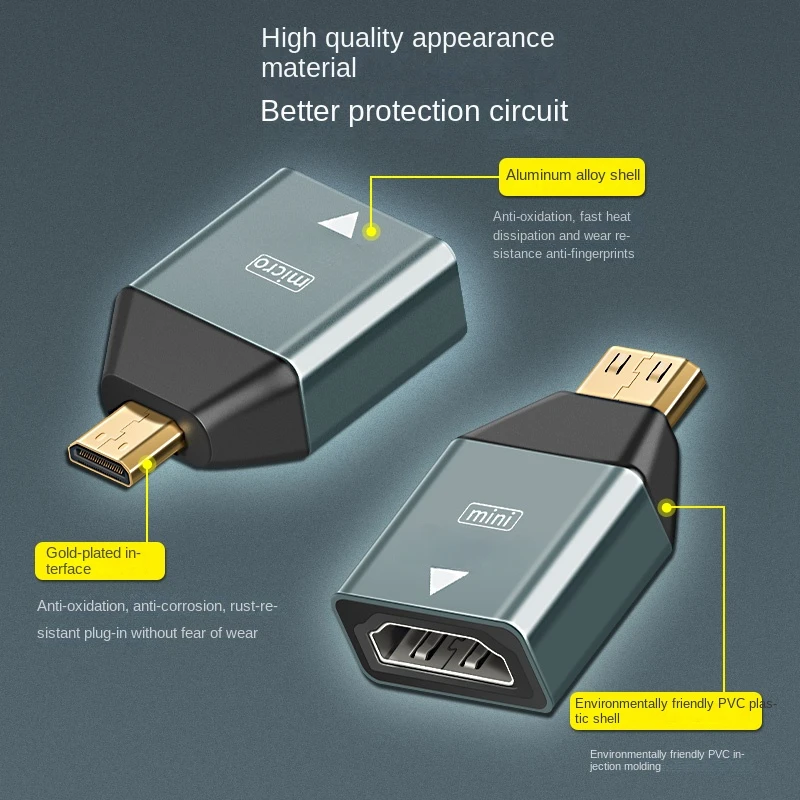 HDM1 Compatible hembra Micro y Mini HDM1 Compatible/tipo D enchufe macho 2 en 1 Adaptador HDD conector chapado en oro