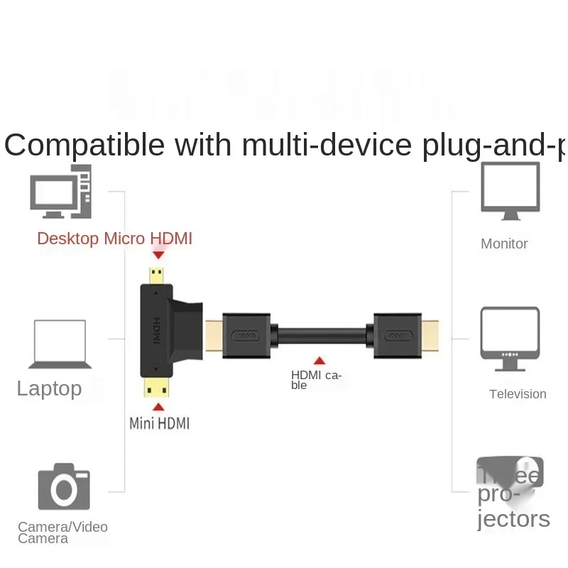 Comprar Adaptador 2 en 1 Mini/Micro/HDMI, conector macho a hembra, extensor de Cable, convertidor de extensión, 1 piezas