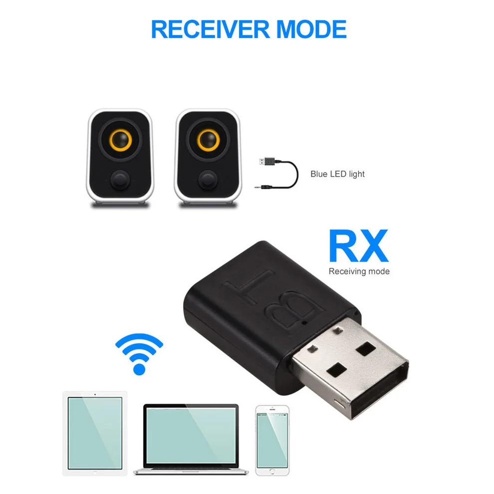 Comprar Adaptador 2 en 1 USB Bluetooth 5,0, receptor Bluetooth, adaptador Dongle USB Bluetooth 5,0, transmisor de Adaptador de Audio para ordenador portátil y coche