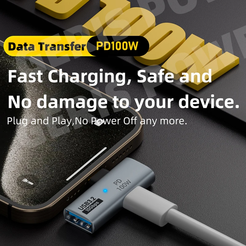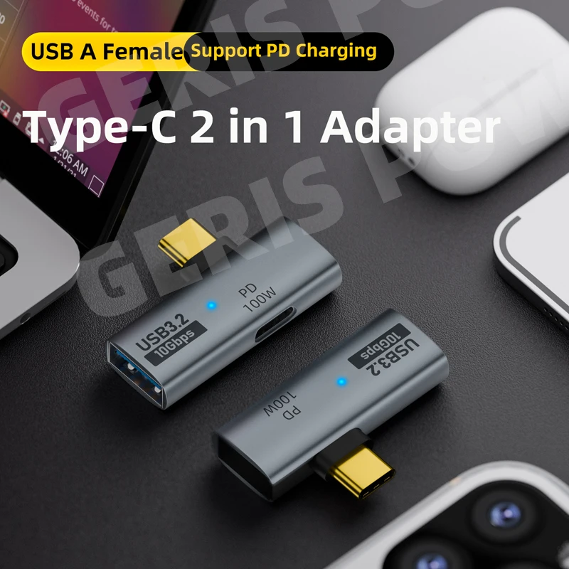 Comprar Adaptador 2 en 1 USB C OTG tipo C a USB 3,1 10Gbps sincronización de datos PD 100W convertidor adaptador de carga rápida para iPhone MacBook portátil