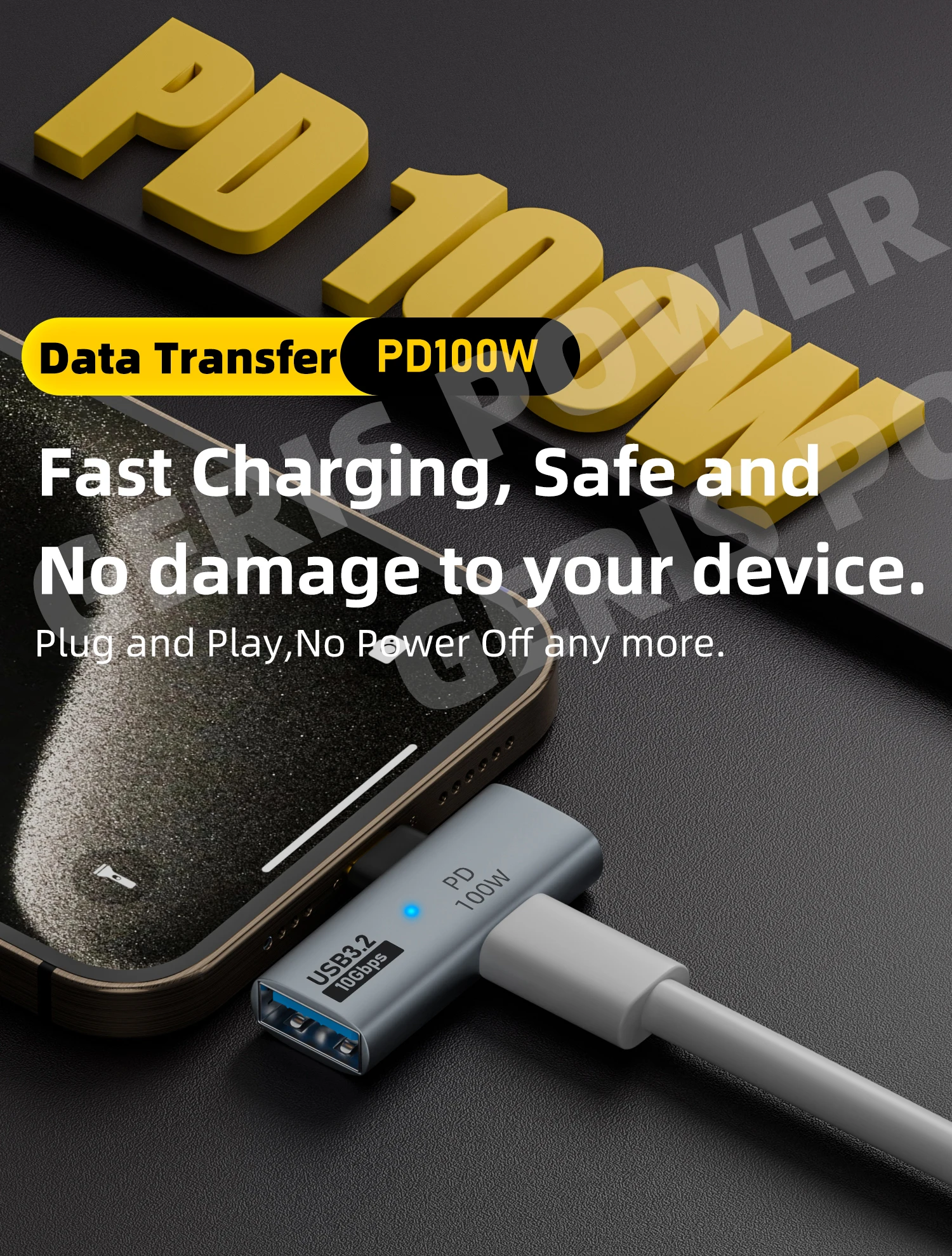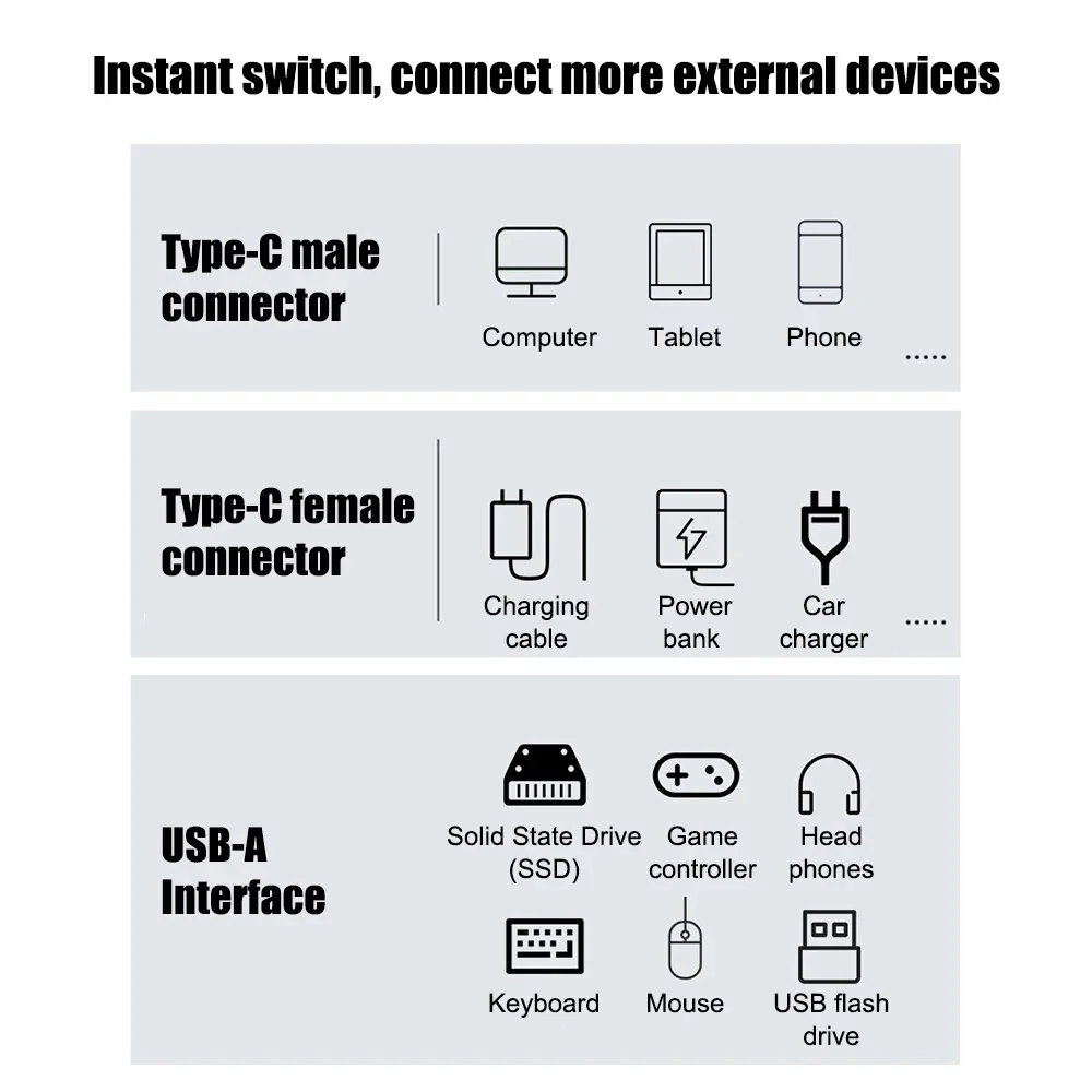Adaptador USB C OTG 2 en 1 Tipo C a USB 3.1 10 Gbps Sincronización de datos PD 100 W Adaptador de carga rápida Convertidor para iPhone MacBook Laptop Tablet Phones