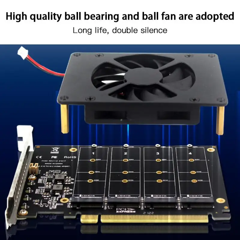 Tarjeta de matriz SSD de 1,4 discos, extendida al mismo tiempo, señal de velocidad completa de 4*32Gbps, con ventilador de refrigeración.