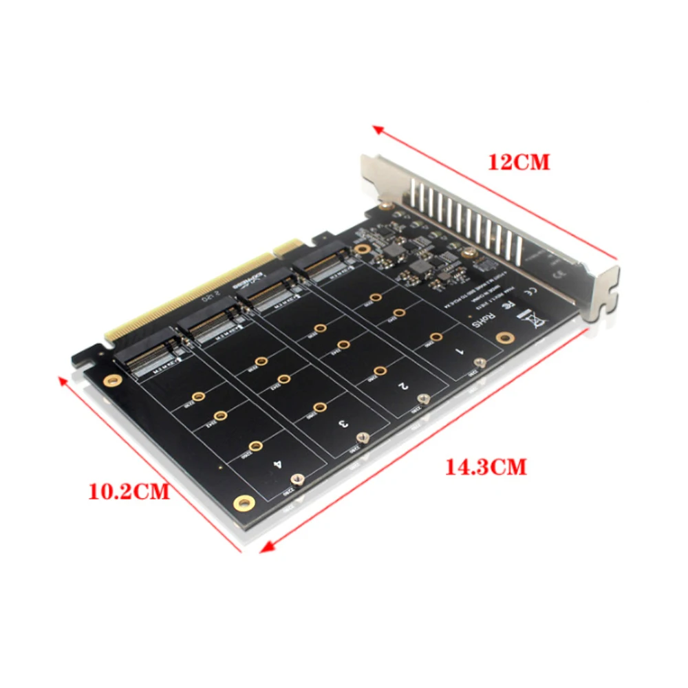 Comprar Adaptador de 4 discos M.2 NVMe SSD PCIe X16, interruptor PCI Express X16 4,0 A 4 puertos, tarjeta adaptadora M.2 compatible con bifuración RAID PCIe