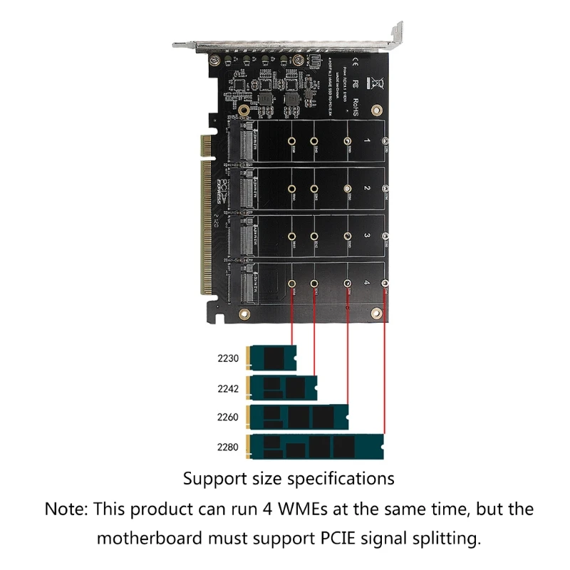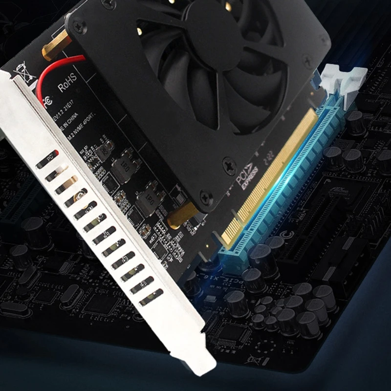 Package Includes: 1PC x 4 Sets of NVME RAID PCI-E X16 split card + fan + baffle