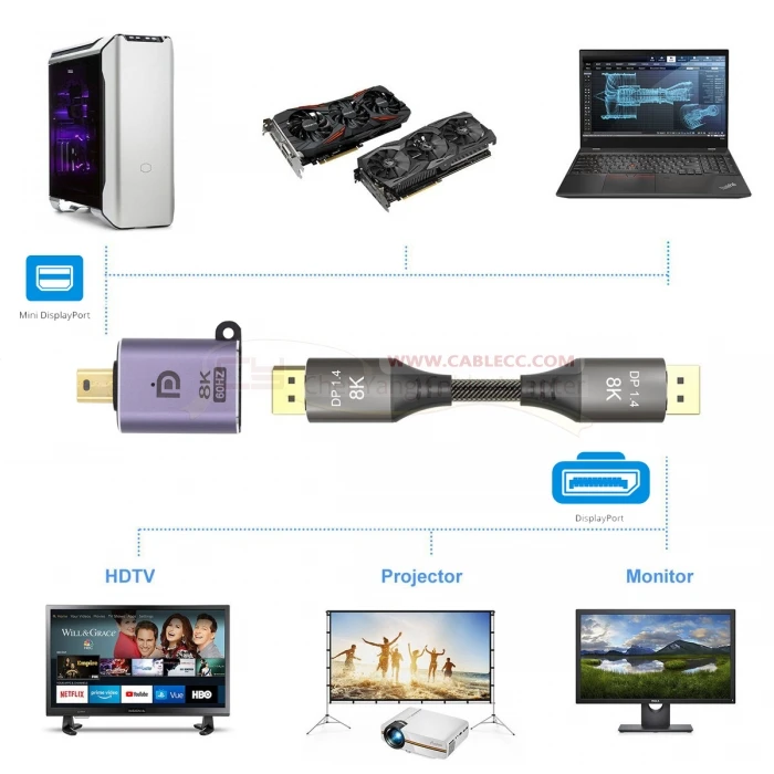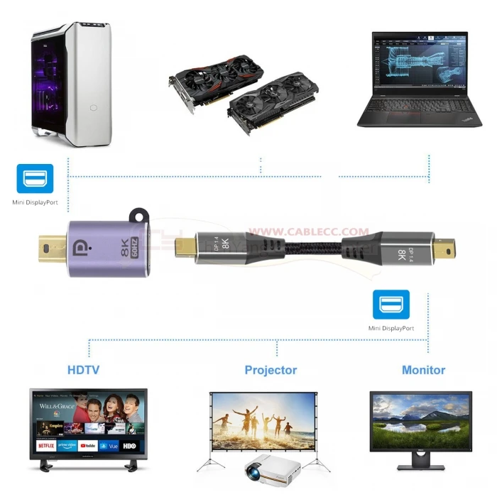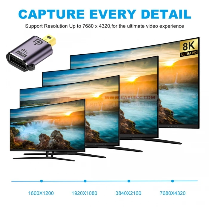 Adaptador MiniDisplayPort macho a hembra, compatible con alta resolución 8K 7680*4320